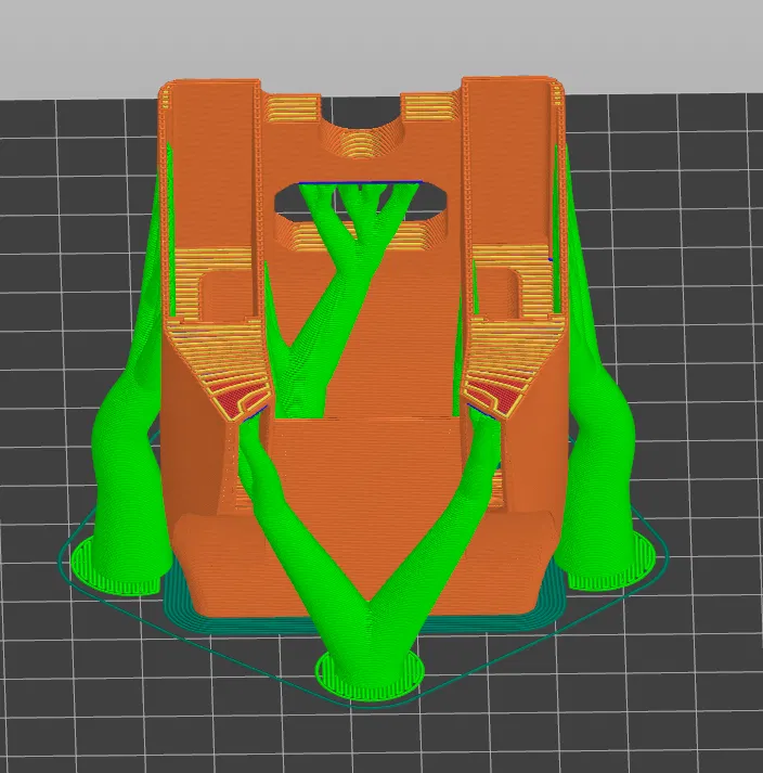 Support bên trong: Part nó có đủ chỗ để lắp không cần phải chỉnh kích thước, nhưng bạn có thể cần chêm thêm miếng lót cho mấy cái quạt (giấy, cao su, hoặc part in). Mình khuyên bạn nên in với nozzle 0.4mm hoặc 0.6mm để có bề mặt hoàn thiện và độ bền.