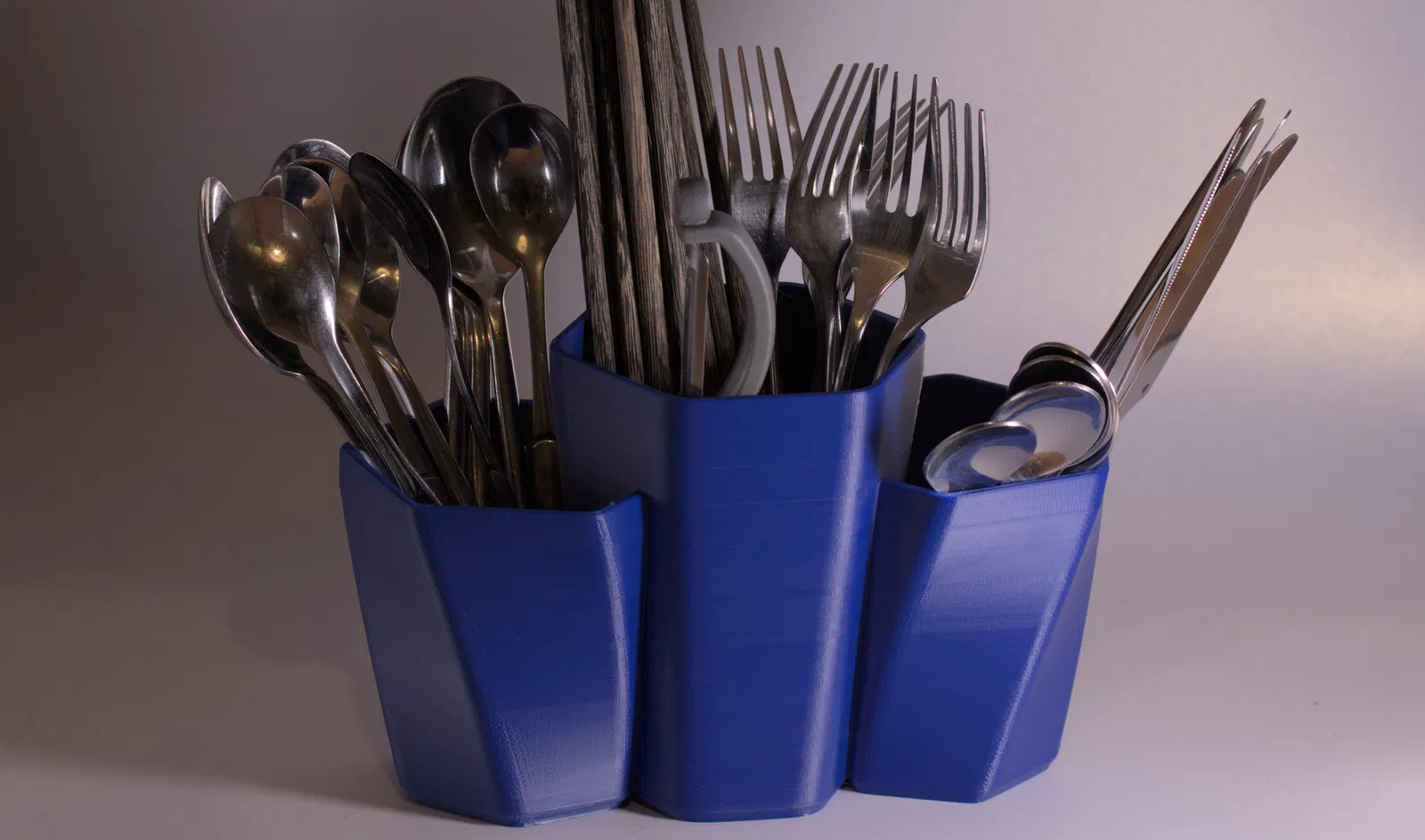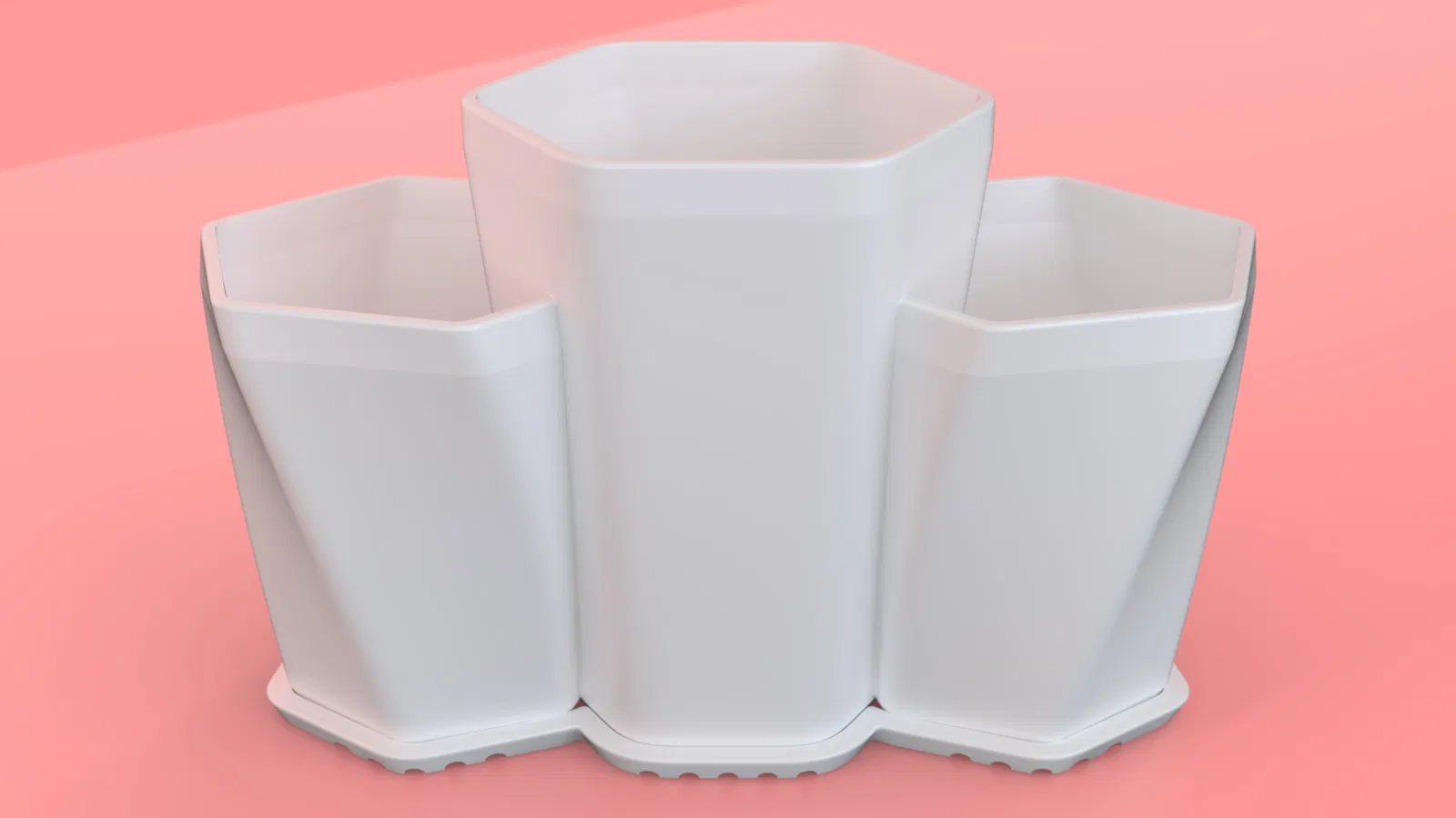 Trinacle — một bộ tổ chức bồn rửa được in 3D kiểu dáng đẹp. Với ba ly liền mạch, nó giúp sắp xếp bàn chải đánh răng và làm khô dụng cụ nhà bếp một cách hiệu quả. Nâng cấp không gian của bạn với giải pháp đa năng này.