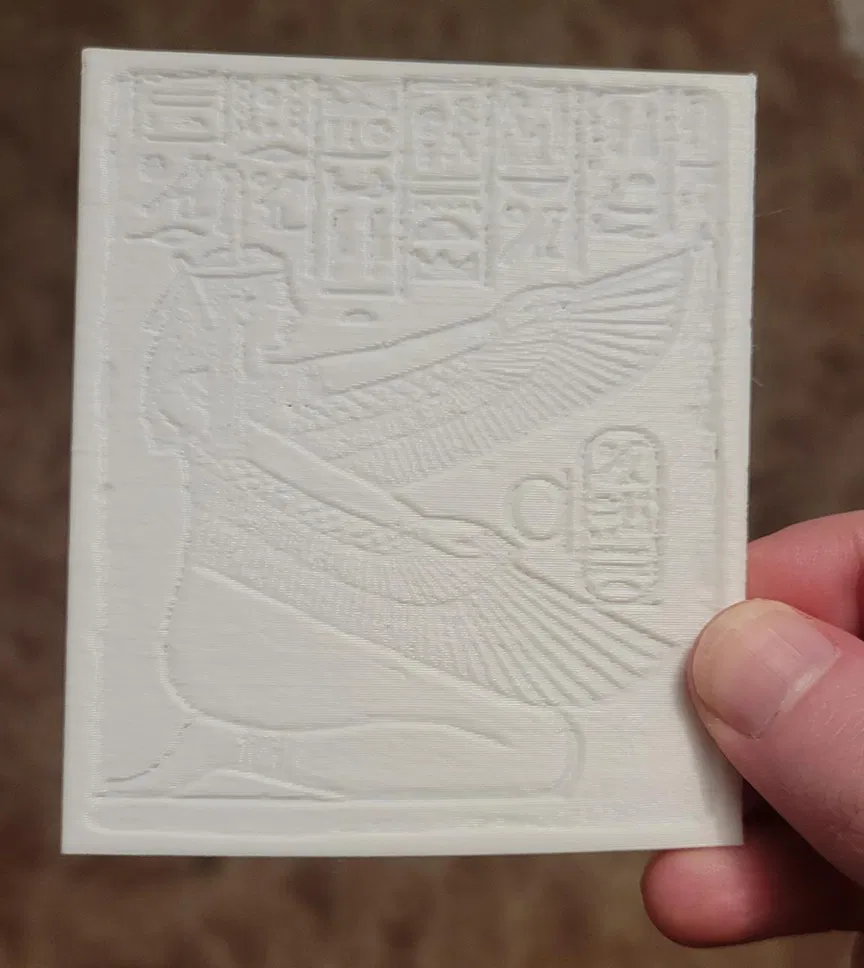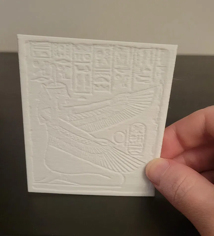 Mô hình chữ tượng hình Ai Cập được in từ hình ảnh thật, không phải AI. In bằng PLA trên Prusa MK4S với chiều cao lớp 0.28mm và đầu phun 0.4mm. Thích hợp cho các dự án về Ai Cập cổ đại.