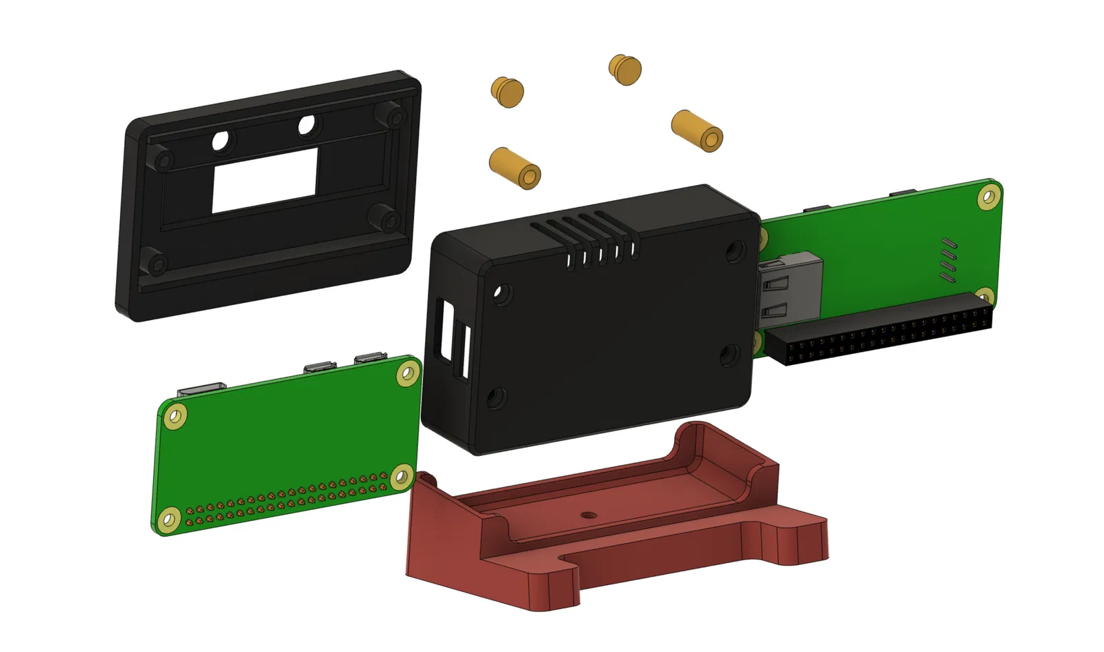 Các dung sai được thiết kế chặt chẽ, nhưng sẽ in và hoạt động tốt trên máy Prusa. 2 miếng đệm 11mm được sử dụng giữa Pi và Hat ở phía trên của vỏ case để định vị chúng cách nhau đúng cách. Chúng không cần thiết ở phía dưới vì đó là nơi có các header giữa Pi và Hat và định vị mọi thứ đúng cách.