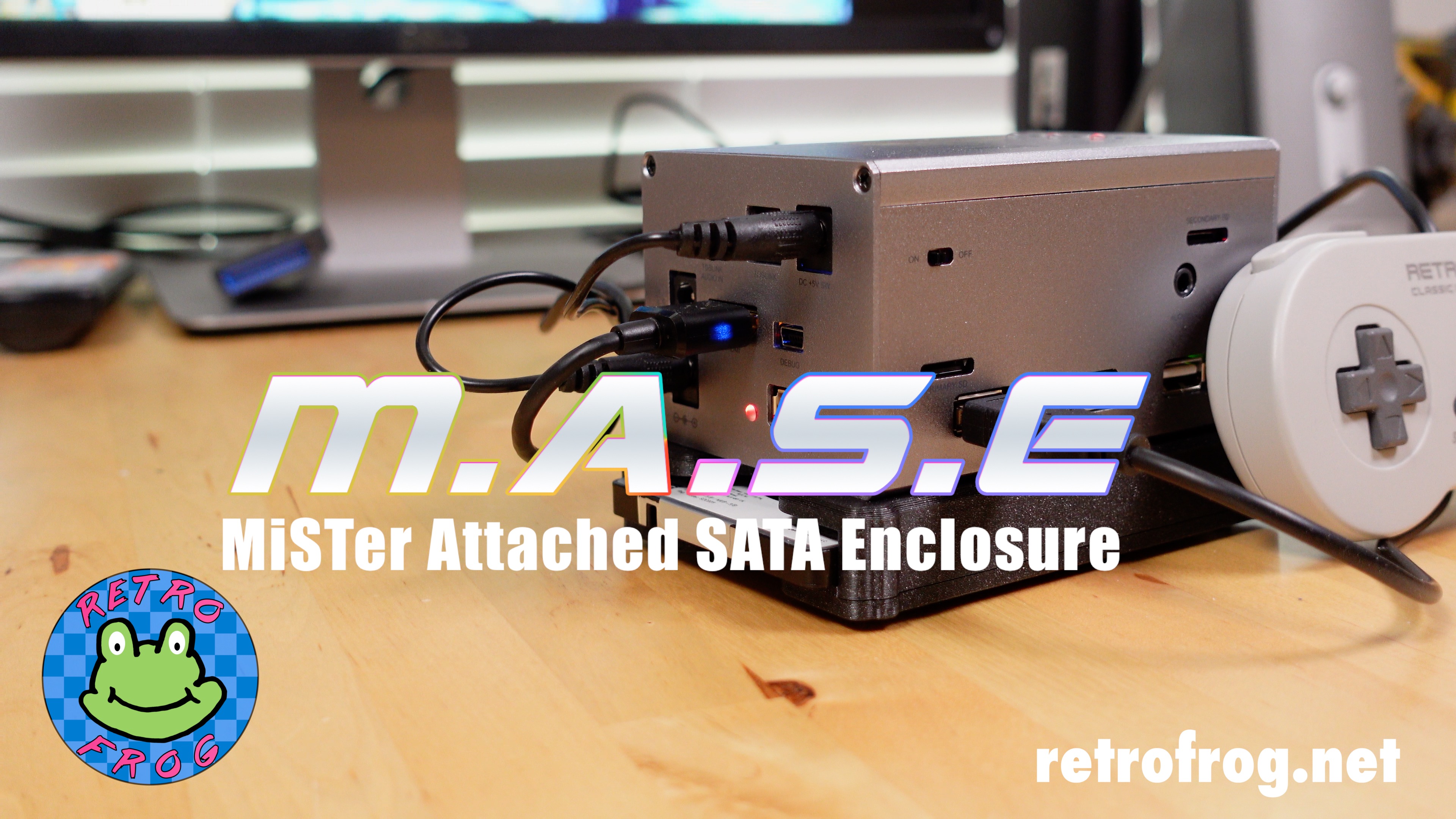 MASE là hộp đựng được thiết kế riêng, cho phép gắn ổ cứng SATA 2.5 inch hoặc SSD dung lượng lớn, giá rẻ vào máy MiSTer FPGA. Cần sử dụng USB hub có nguồn phụ để đảm bảo hoạt động ổn định.