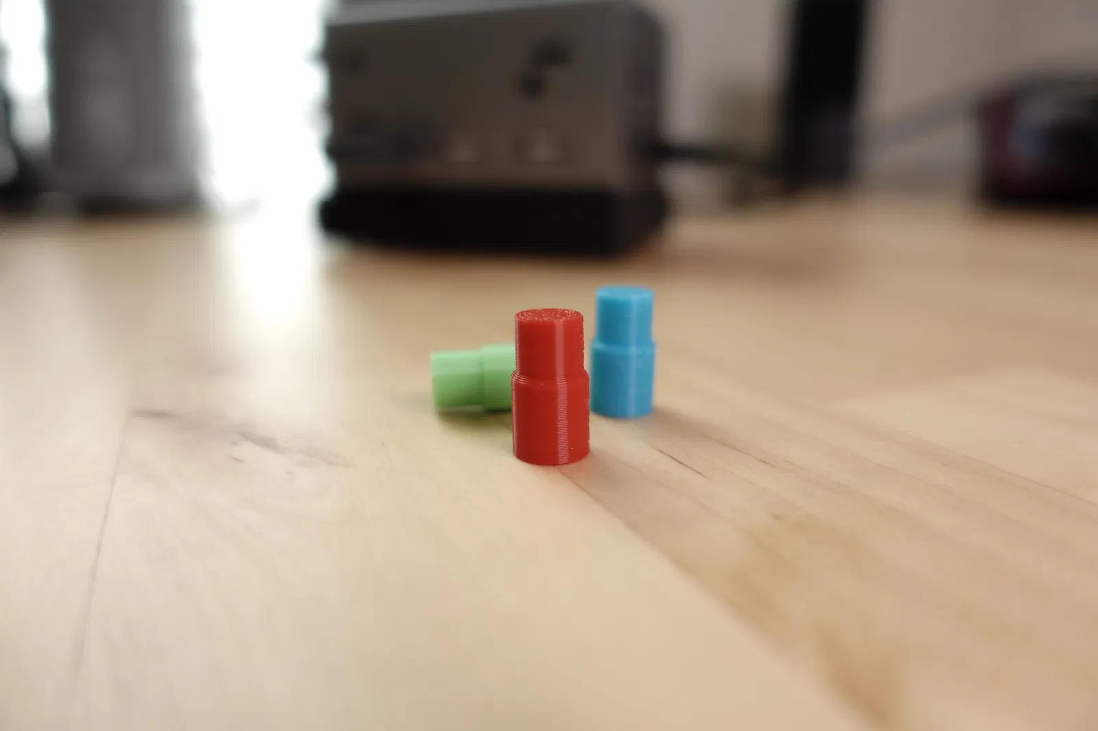 In 3 cái nút nha. Tui khuyên mọi người nên in úp xuống (mặt trên của nút áp vào mâm in) để cái mặt trên của nút khi in ra nó có bề mặt đẹp hơn đó.