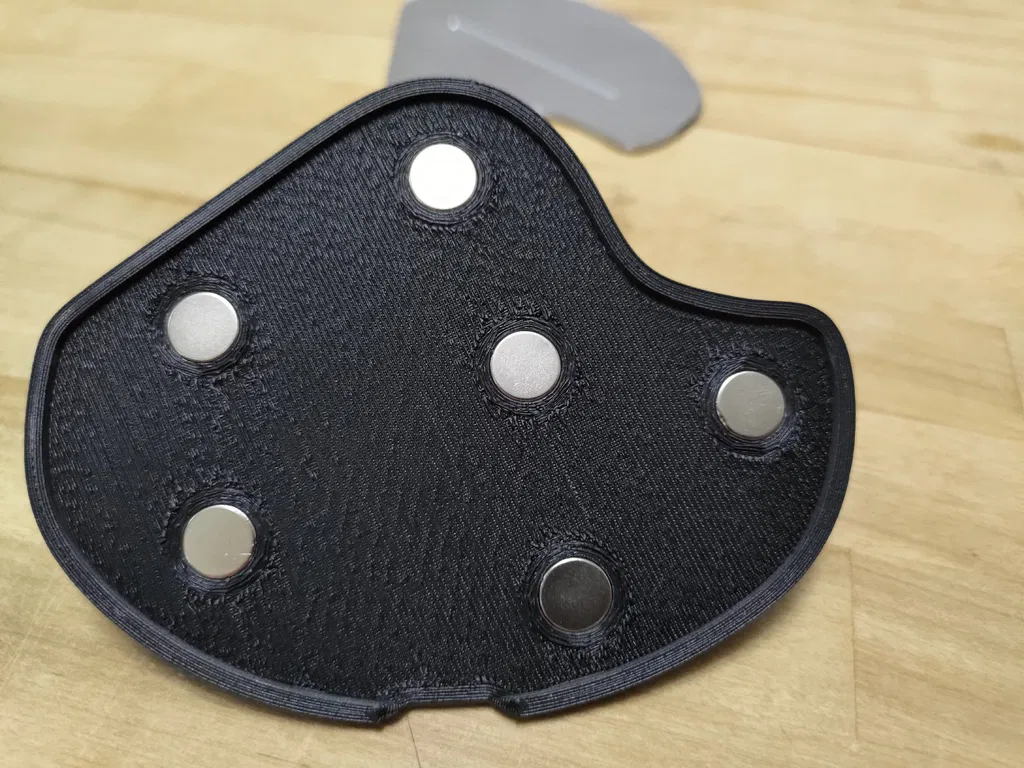 Đây là một giải pháp tất cả trong một giải pháp cho logitech mx ergo của bạn. Chuột nằm ở 45 °. Nó sử dụng cơ sở kim loại ban đầu và được giữ với tối đa 6 nam châm 10x2mm (bạn chỉ thực sự cần 3) và nó bị lõm nên không có nguy cơ bị trượt cơ sở. Chuột được giữ trên 4 nam châm 8x2mm có thể cần được dán vào, chỉ cần đảm bảo đặt chúng vào độ phân cực thích hợp duy nhất cho mỗi con chuột (tôi có 2 mx EGRO và 4 nam châm ở dưới cùng của mỗi con chuột không giống nhau nên nó đẩy một con chuột ra trong khi giữ cái khác). Khoảng cách từ cạnh của chuột đến bàn là khoảng 2 mm. Được sử dụng. Các nam châm trong chuột không được dán xuống nhưng được giữ tại chỗ bởi 2 ốc vít và một tấm kim loại như được nhìn thấy trong bức ảnh cuối cùng. Chỉ cần tách chuột ra, lật các nam châm (mỗi bên có 2 nam châm vuông) và giống.