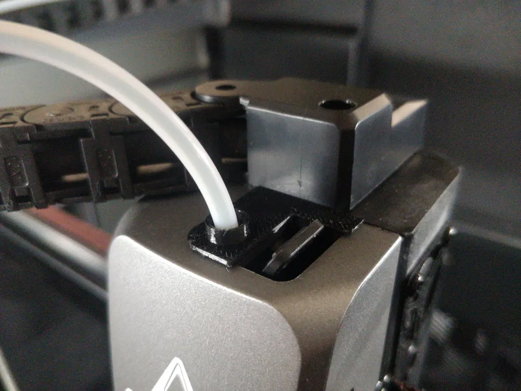 Cách hoạt động là loại bỏ áp lực lên ống tại gốc của đầu nối, bằng cách giữ ống thẳng ngay phía trên nó. Nó được thiết kế để nắp che nguyên bản của đầu máy in vẫn giữ nguyên vị trí, hơn nữa, nó dựa vào chính nắp che để giữ ống ở đúng vị trí. Vấn đề là ống PTFE bắt đầu cong ở chỗ khác chứ không phải ở đầu nối, mà là ở phía trên bộ phận này.
