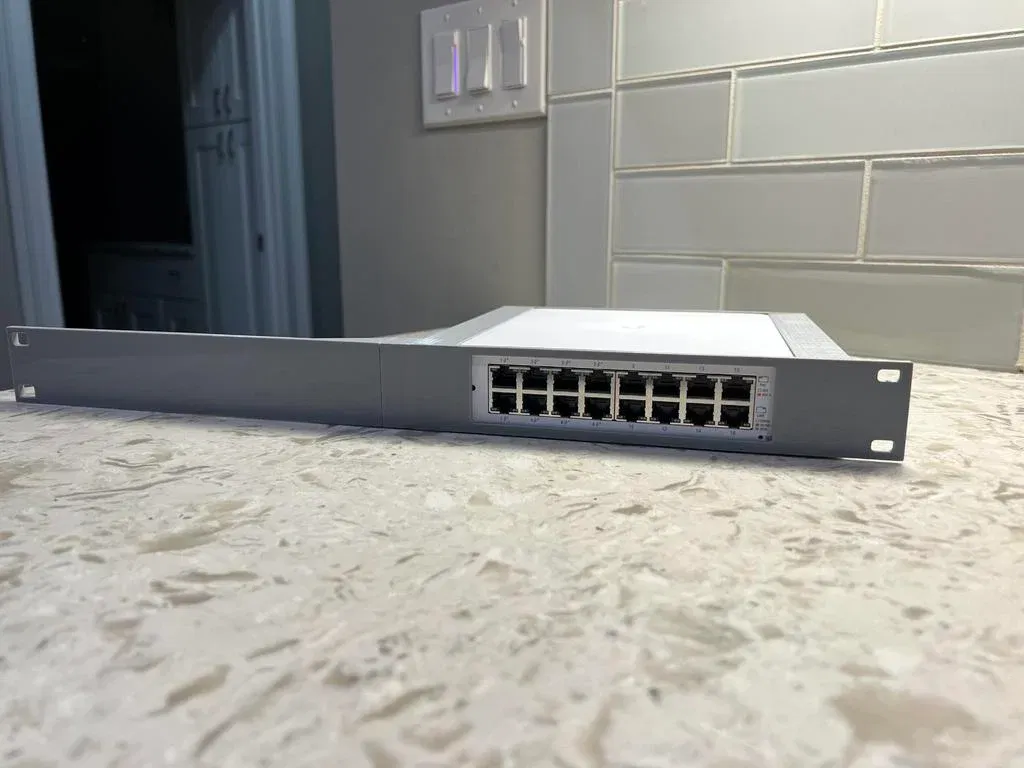 Mình đã thiết kế cái giá đỡ gắn tủ rack 1U này cho cái Unifi USW 16 Lite POE switch, nó vừa với các tủ rack tiêu chuẩn 19" có chiều sâu dưới 8 inch. Lỗ vít phía sau là dùng cho ốc M4.5x.75 vì đó là mấy con ốc mình có sẵn.