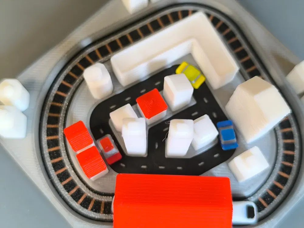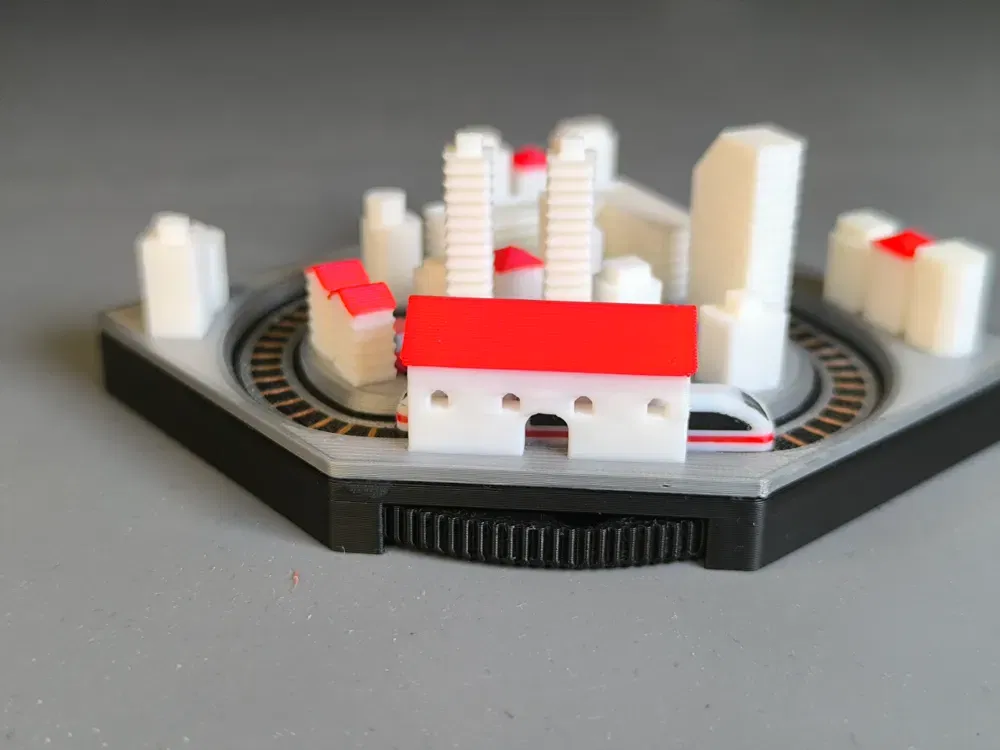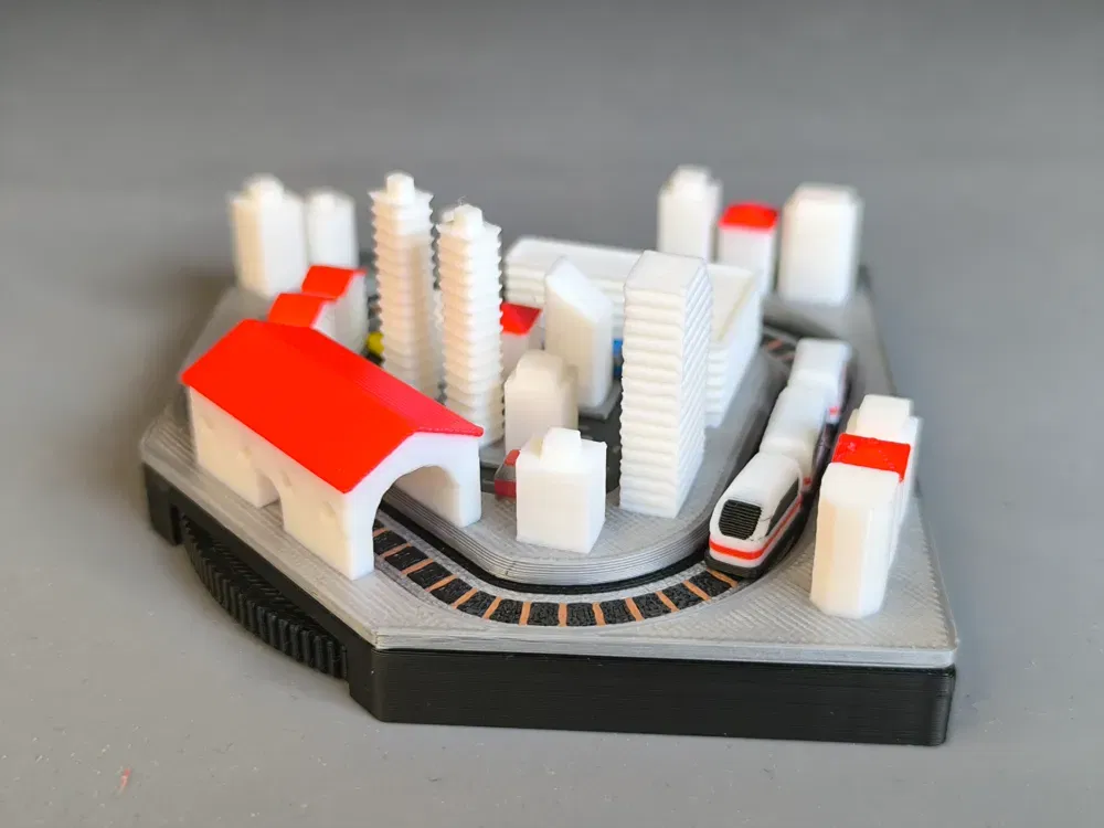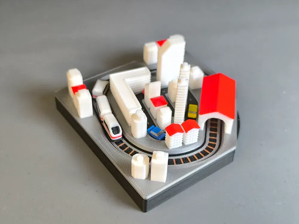 Mô hình Tàu Mini - Mô Hình Thành Phố Hoạt Động với tàu và xe cộ di chuyển. Tàu mini lấy cảm hứng từ ICE, chạy bằng tay quay nam châm. Các bộ phận in được thiết kế tối ưu màu sắc. Hỗ trợ động cơ hóa, có video hướng dẫn lắp ráp chi tiết.