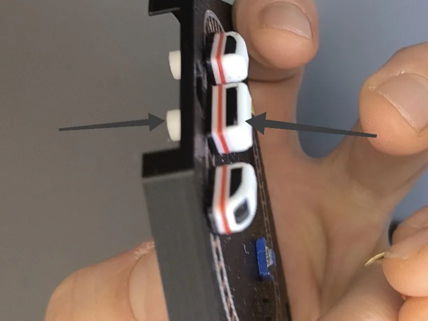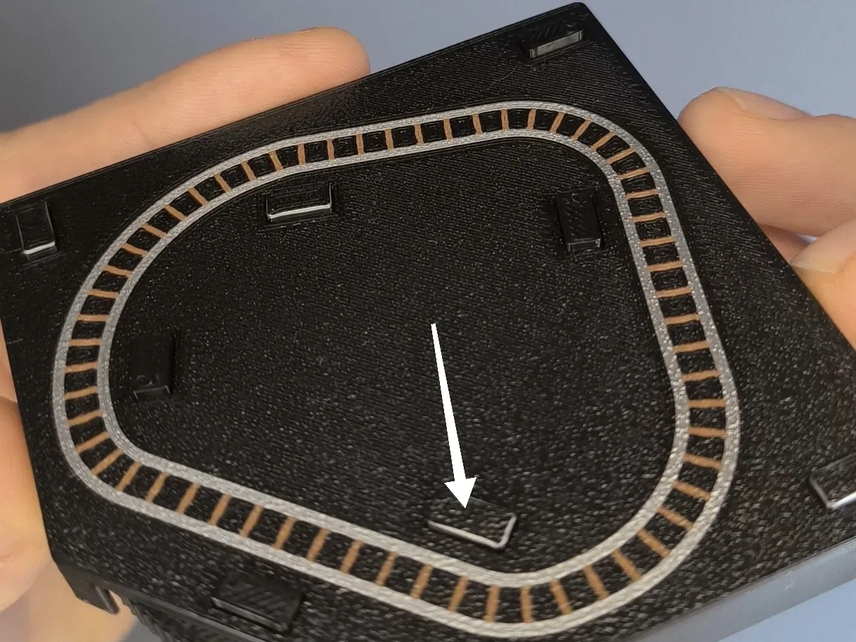 Và lắp 6 nam châm vào 6 chốt theo hướng ngược lại! Các chốt phải hút tàu và xe