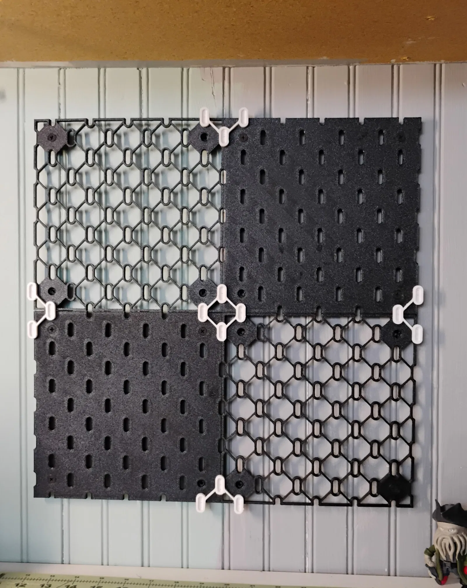 Tui đã thêm một lớp vỏ liền mạch cho tấm kiểu "lưới" ban đầu để tạo điểm nhấn thỉnh thoảng, kèm theo ưu điểm là tăng độ cứng để treo các vật nặng.