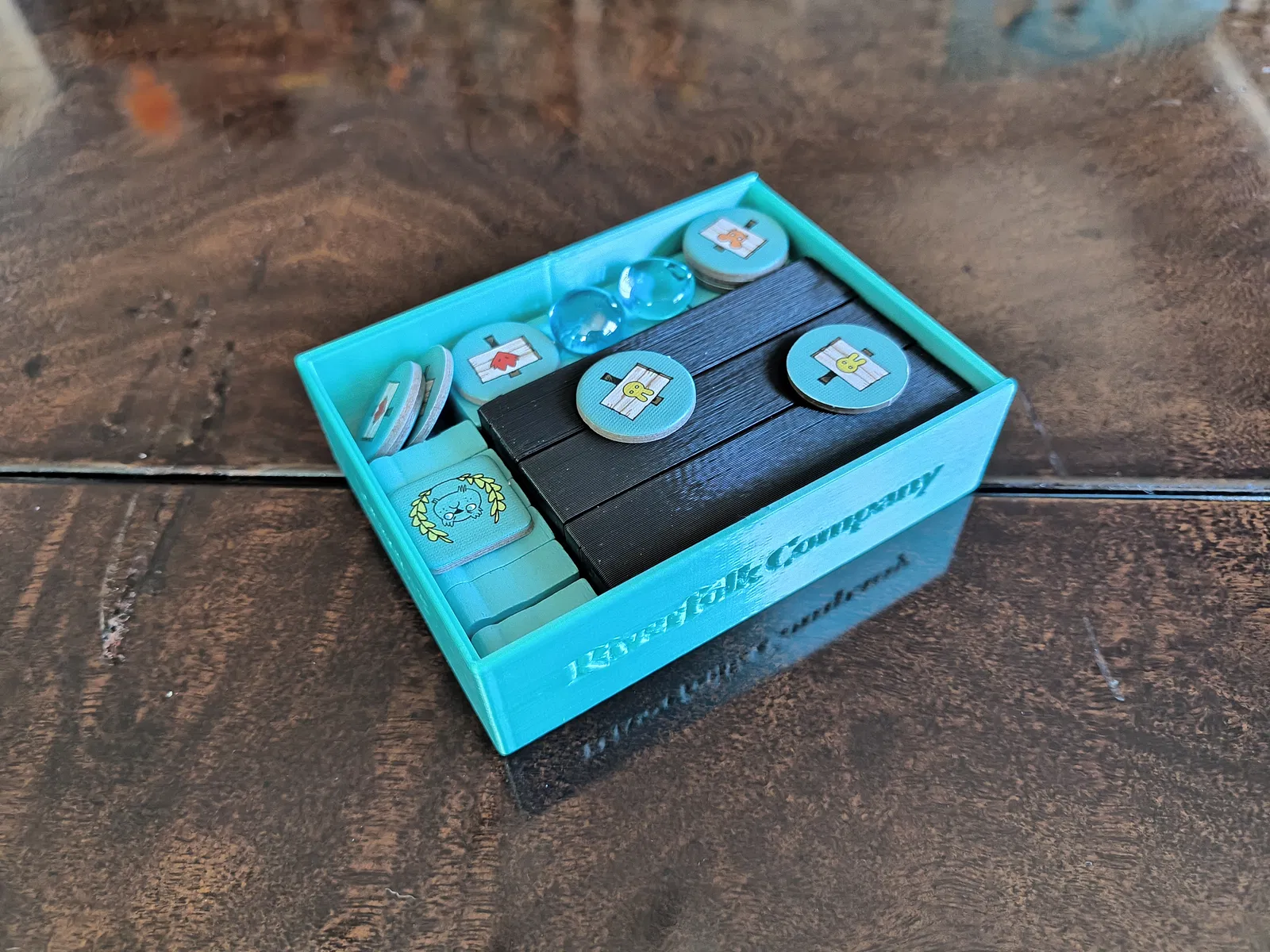 Thiết kế này dựa trên bản in-and-play tháng 2 năm 2025 cho bản mở rộng Homeland. Kích thước hộp cho các phe phái mới, khe cắm cho các địa danh mới, v.v., có thể thay đổi sau khi có các thành phần cuối cùng. Câu hỏi lớn hiện tại là các điểm đánh dấu lá chắn được nâng cấp cho Lilypad Diaspora trông như thế nào. Chúng có thể đủ lớn để loại bỏ tất cả các địa danh khỏi giải pháp này.