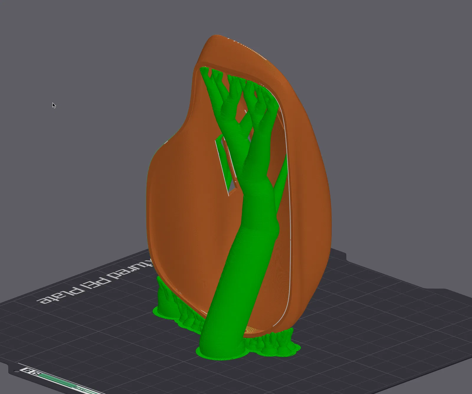 - Tui cần tìm ra loại nhựa in lý tưởng cho bản in này. PLA quá cứng, Nylon quá nhạy cảm với các chi tiết rủ xuống, tất cả các loại nhựa chứa sợi carbon đều quá cứng. Tui đang nghĩ đến PLA-HR từ Biqu, tui còn dư một ít từ lần in quả bóng rổ.