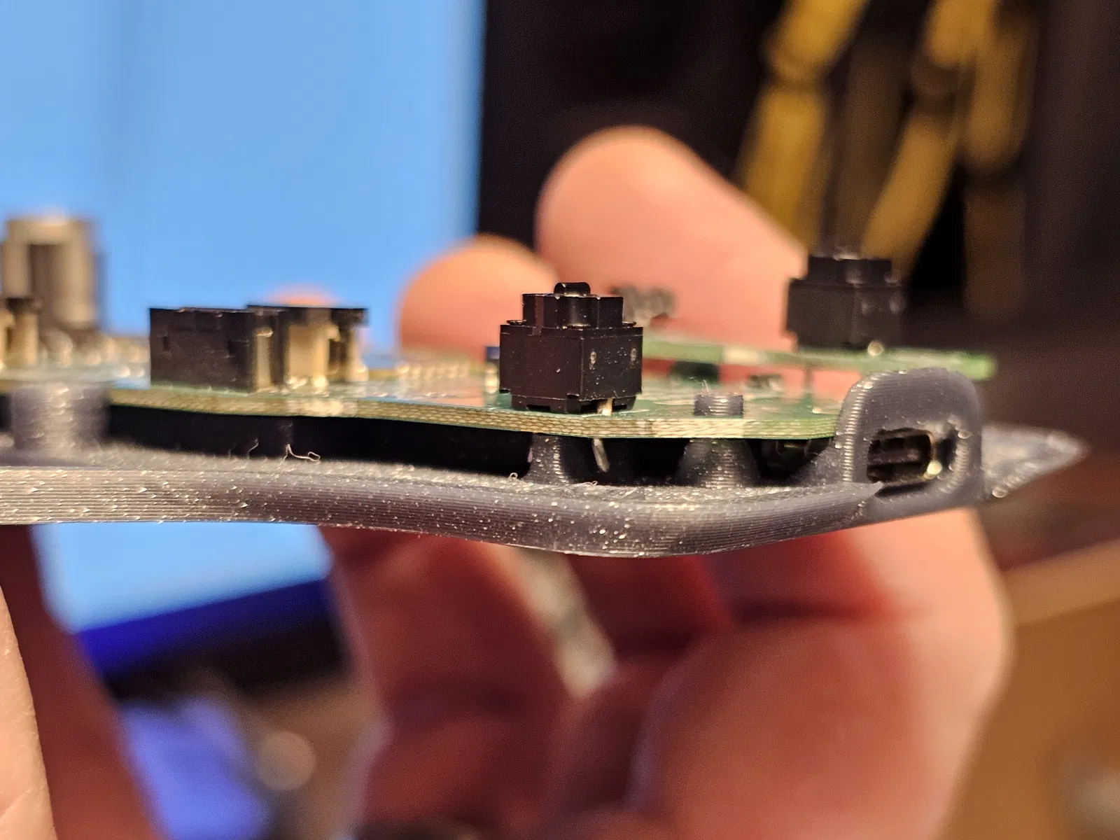 - Độ nhạy của nút bấm chưa tối ưu. Tui cần điều chỉnh một vài khoảng cách nhỏ và làm sạch bề mặt bản in.