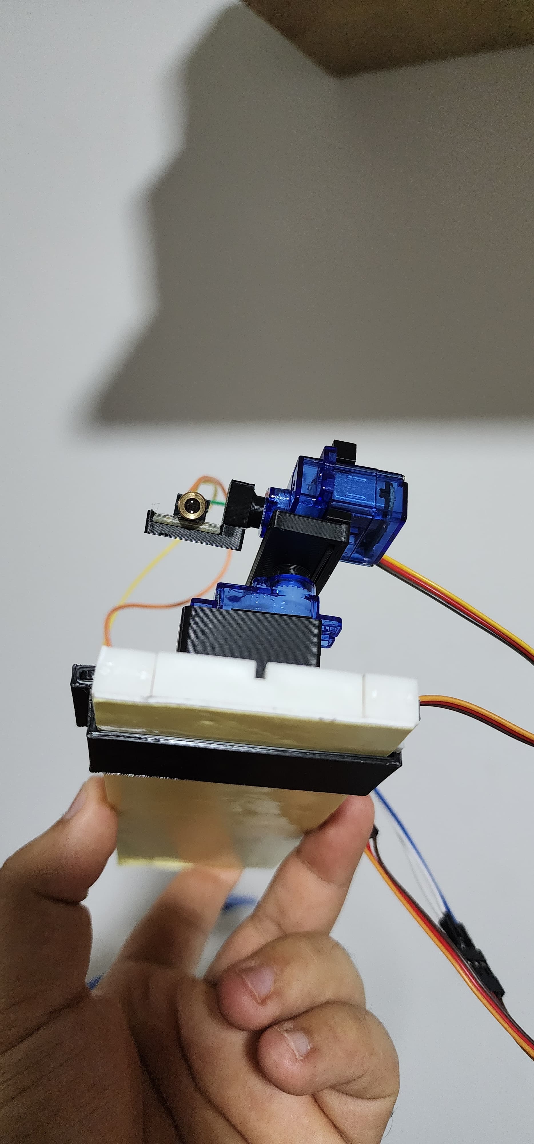 Dự án này là một món đồ chơi laser tự động được thiết kế để giải trí cho thú cưng, sử dụng hệ thống pan-and-tilt điều khiển bằng Arduino. Nó sử dụng các servo SG90 để di chuyển con trỏ laser theo các mẫu chuyển động mượt mà, được xác định trước, tạo ra trải nghiệm hấp dẫn và tương tác cho thú cưng. Các servo được gắn trên một cơ cấu pan-and-tilt in 3D, cho phép điều khiển chính xác chuyển động của laser.