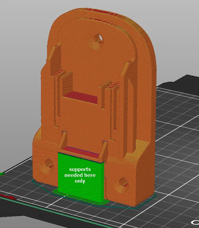 - Dự định in với 2 lớp viền, với bộ chặn cơ khí để ngăn cơ chế bị uốn cong quá mức (và làm gãy nó) - in với nhiều lớp viền hơn sẽ làm khóa cứng hơn và dễ gãy hơn.