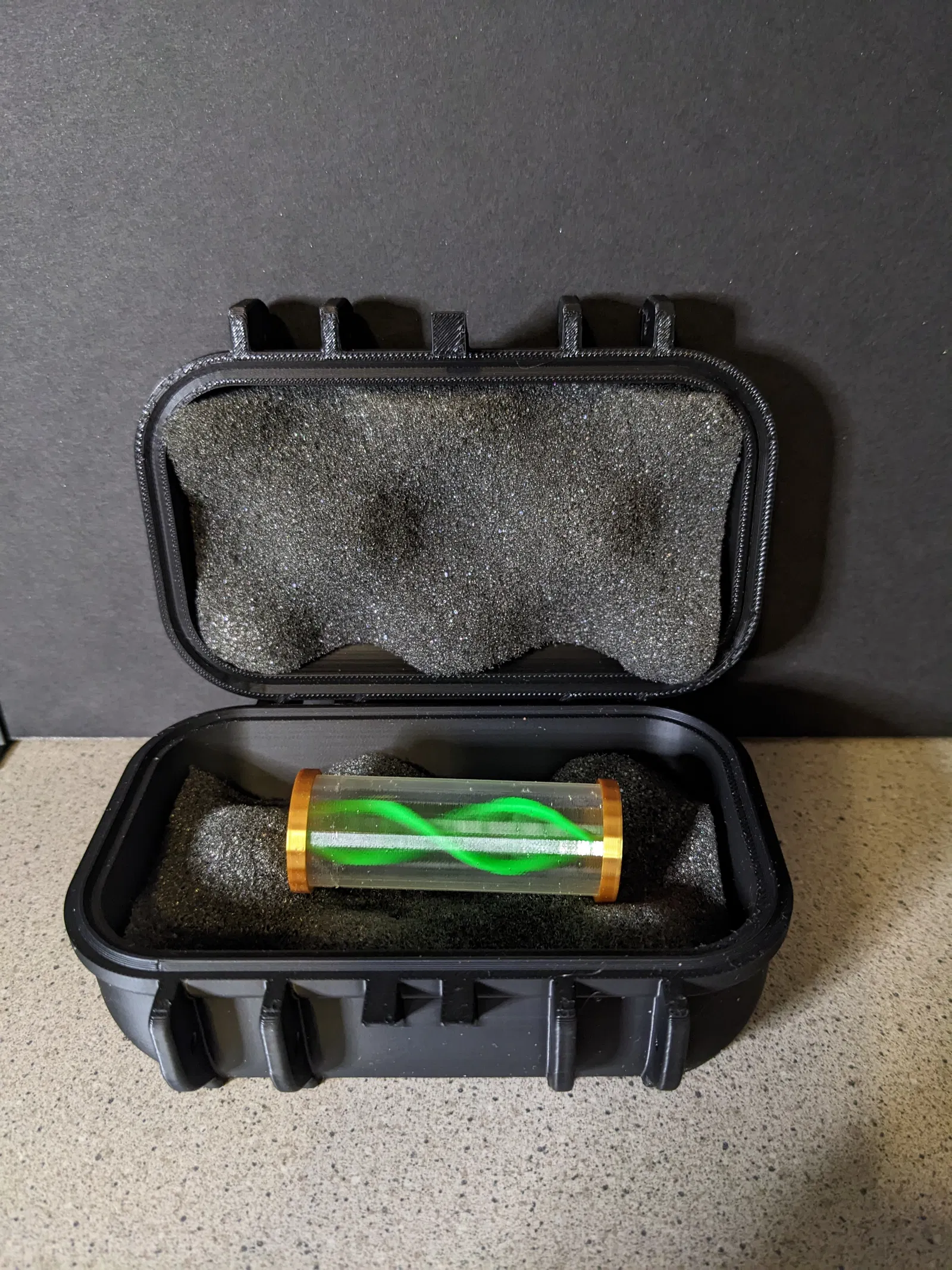 Ống nghiệm được làm từ sợi PLA trong suốt, nó siêu mỏng nên bạn sẽ phải thay đổi "wall generator" thành "Arachne" trong slicer của mình. Phần mút xốp trong hộp là mút xốp thông thường mua trên Amazon, dùng cho hộp súng và dụng cụ.