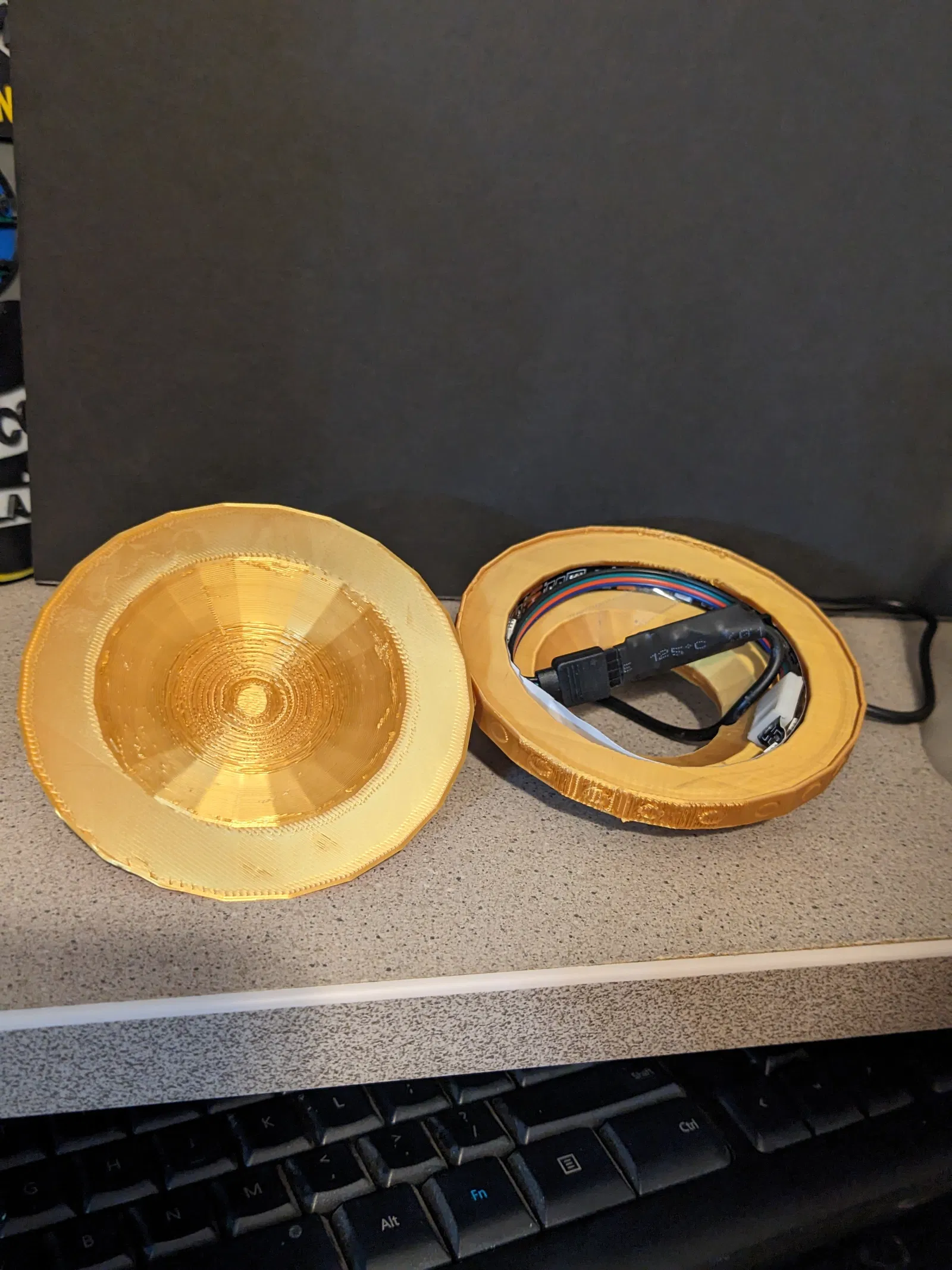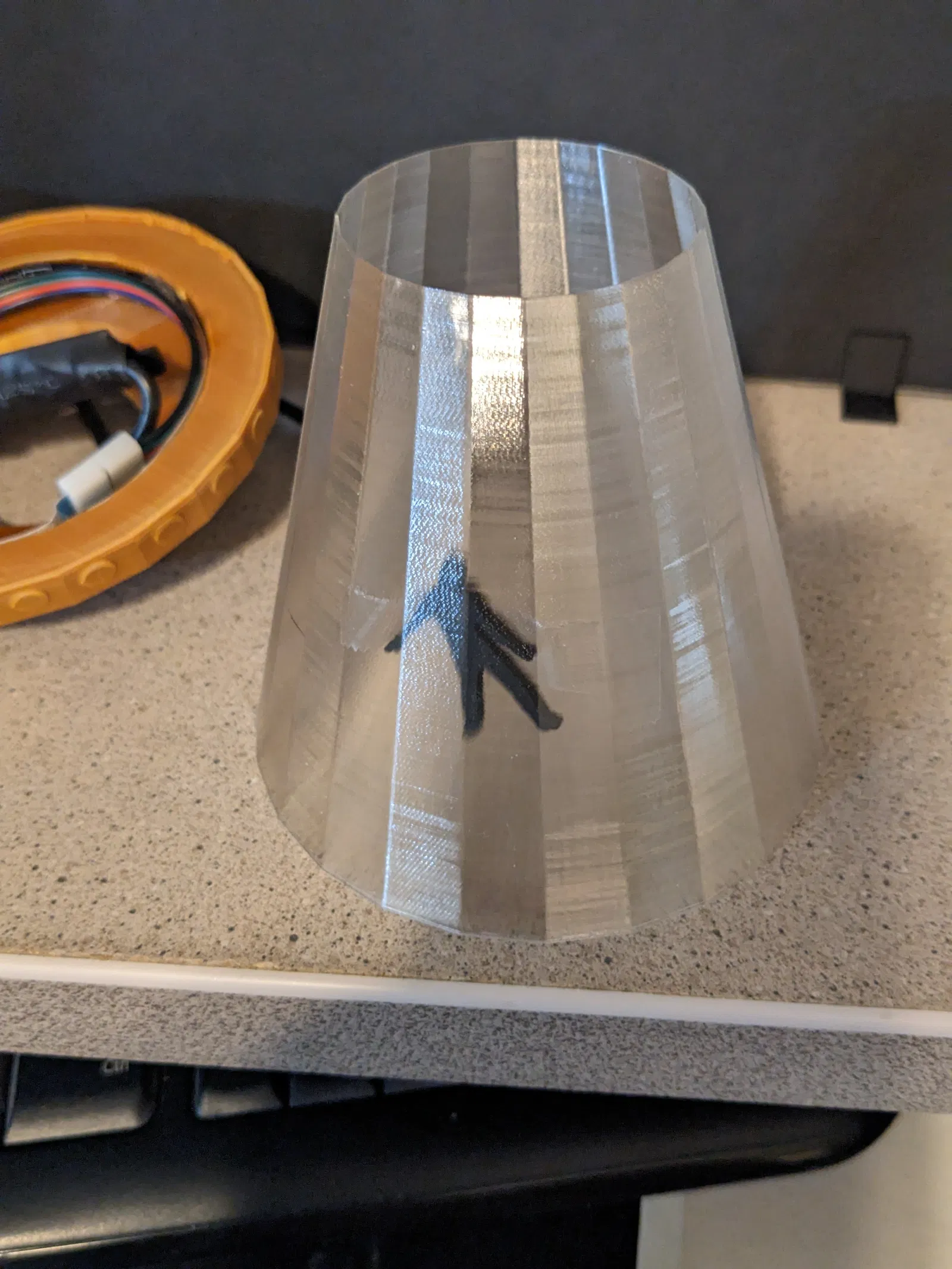 Giống y chang cái vụ bắt cóc tui hồi đêm đông lạnh giá năm... ủa lộn, cái vụ đó bự lắm với lại bị soi kinh lắm! Cái mô hình này nhỏ thôi nhưng mà bạn có thể phóng to thu nhỏ tùy ý. Tui chỉ dán đại anh chàng với con bò vô bên trong cái nón thôi chứ nếu có cước câu cá thì bảo đảm hiệu ứng đẹp hơn nhiều. Tui in cái chóp UFO úp xuống, xài supports tự động, còn cái đáy thì in nghiêng, xài tree supports, còn cái nón thì để ngửa, không xài supports. À mà tui phải chỉnh cái Bambu wall generator qua "arachne" mới in được cái nón cho nó ngon lành đó, tại nó mỏng quá trời. Tui xài sợi filament trong suốt cho cái nón, nhưng mà chắc sợi trắng cũng ổn thôi.