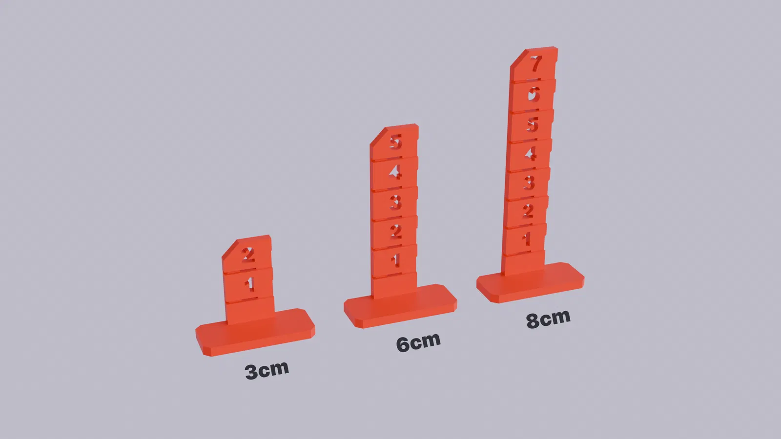 Đạt được sàn nhà hoàn hảo bằng phẳng với các chốt tự san phẳng sàn in 3D này! Được thiết kế cho bê tông, các chốt này giúp đảm bảo chiều cao bề mặt nhất quán và chính xác. Có ba kích cỡ đi kèm và đánh dấu số để dễ dàng điều chỉnh.