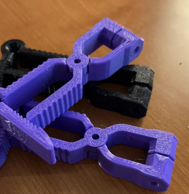 Đây là bản remix từ rebeltaz trên Thingiverse. Tôi gặp khó khăn với việc kẹp bị tuột theo thời gian nên tôi đã làm lại các răng để chúng giữ chắc hơn. Bạn sẽ cần một bu lông m3 x dài 15mm, một đai ốc 3mm để lắp ráp chúng. Đôi khi vòng đệm cũng giúp ích tùy thuộc vào chất lượng in của bạn.