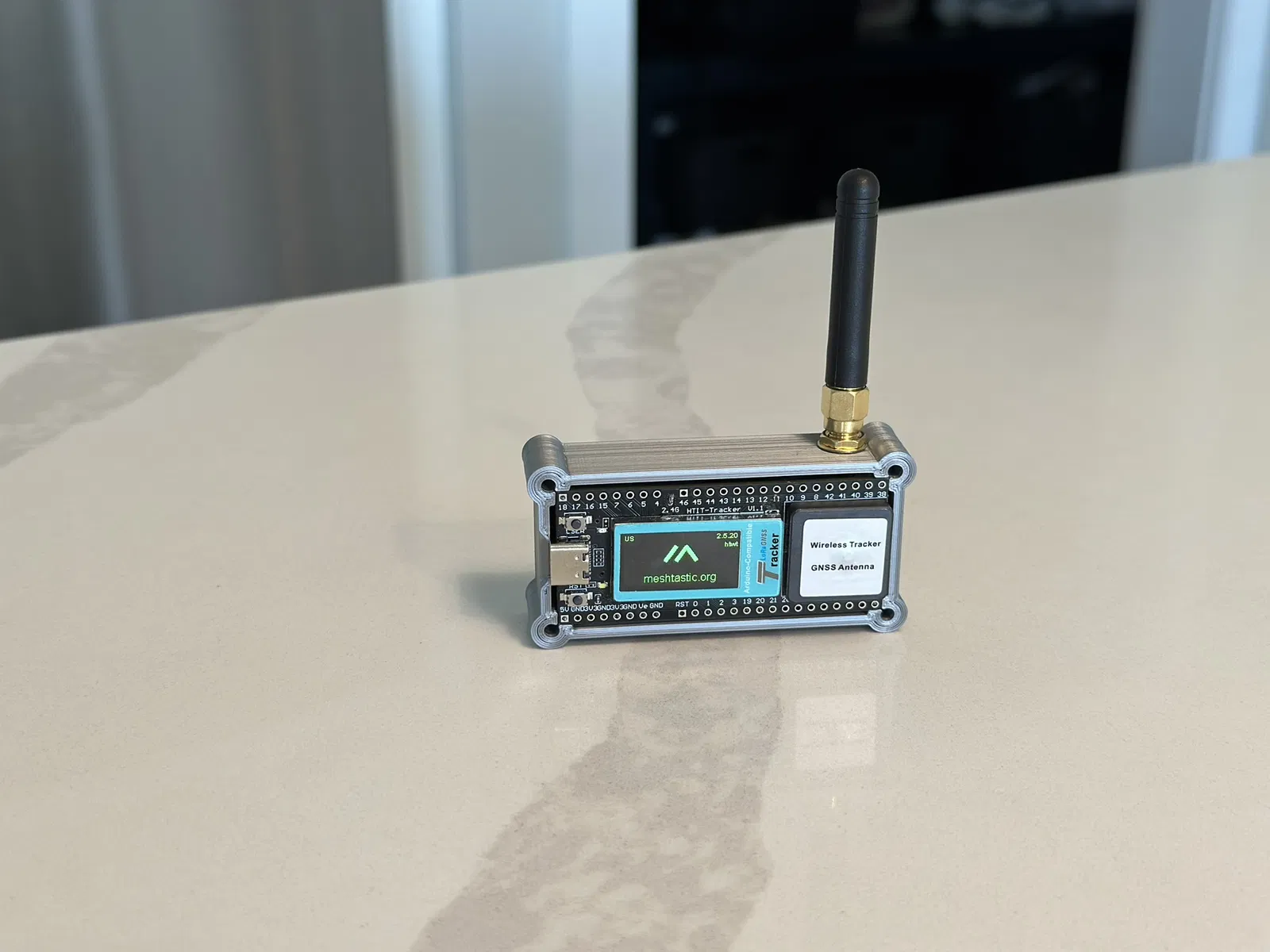 Cái vỏ đơn giản cho Heltec Wireless Tracker, pin MakerFocus 1000mAh và ăng-ten DIYmall SMA. Khi cắt lát (slicing), nhớ cung cấp đủ hỗ trợ (supports) cho các lỗ bắt vít chìm (M3).