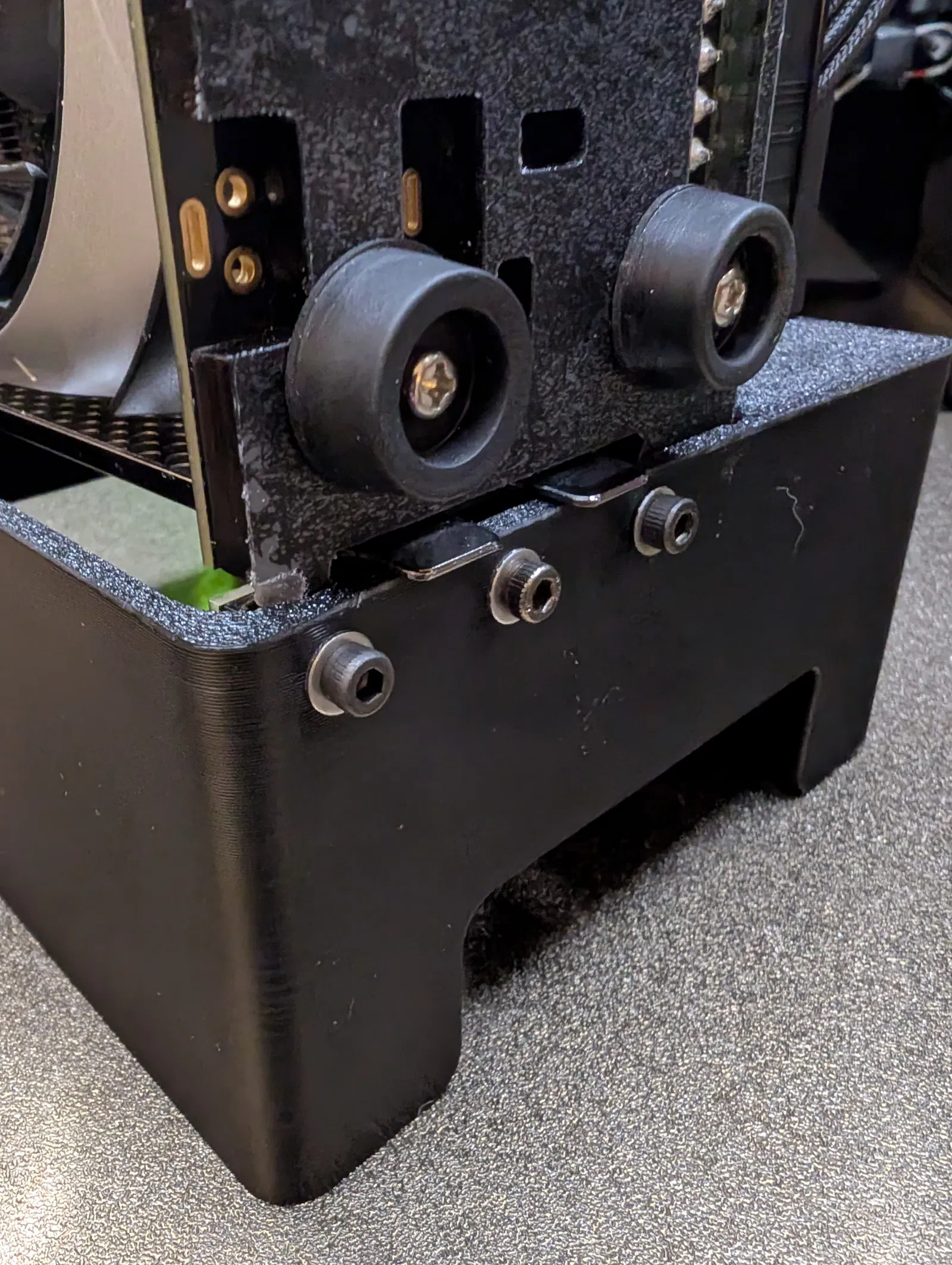 Sau khi in xong, tui thấy có 2 vấn đề và đã chỉnh sửa lại, nhưng chưa in lại: Lỗ cho ốc vặn tay bị lệch một chút và nó hơi lỏng, nên tui có thêm một cái gờ nhỏ ở phía đó.