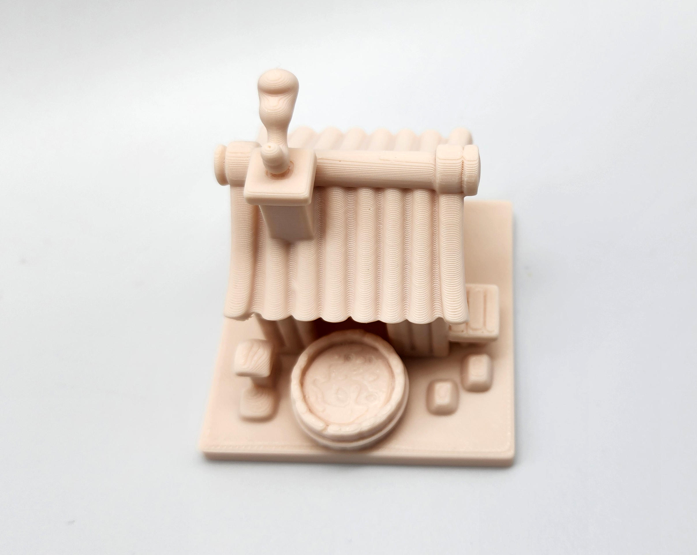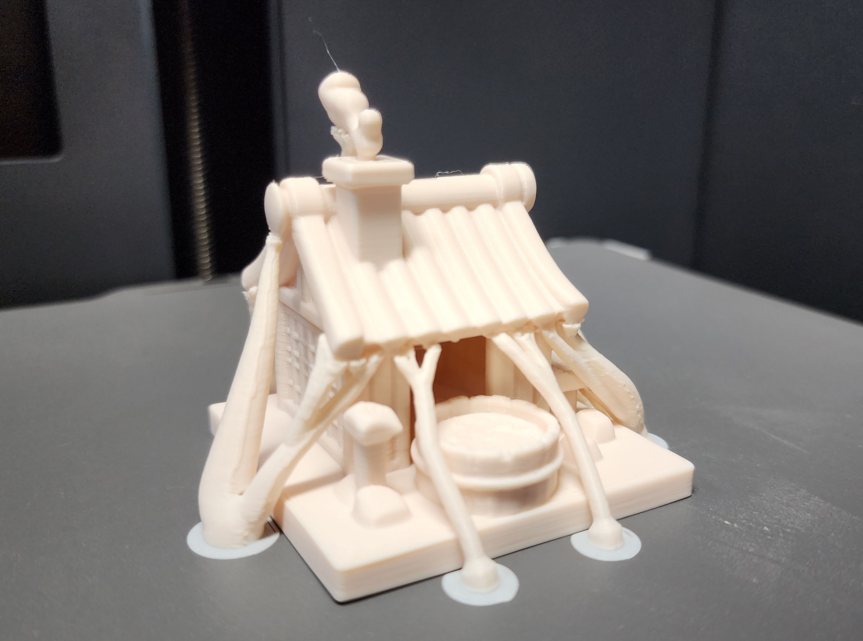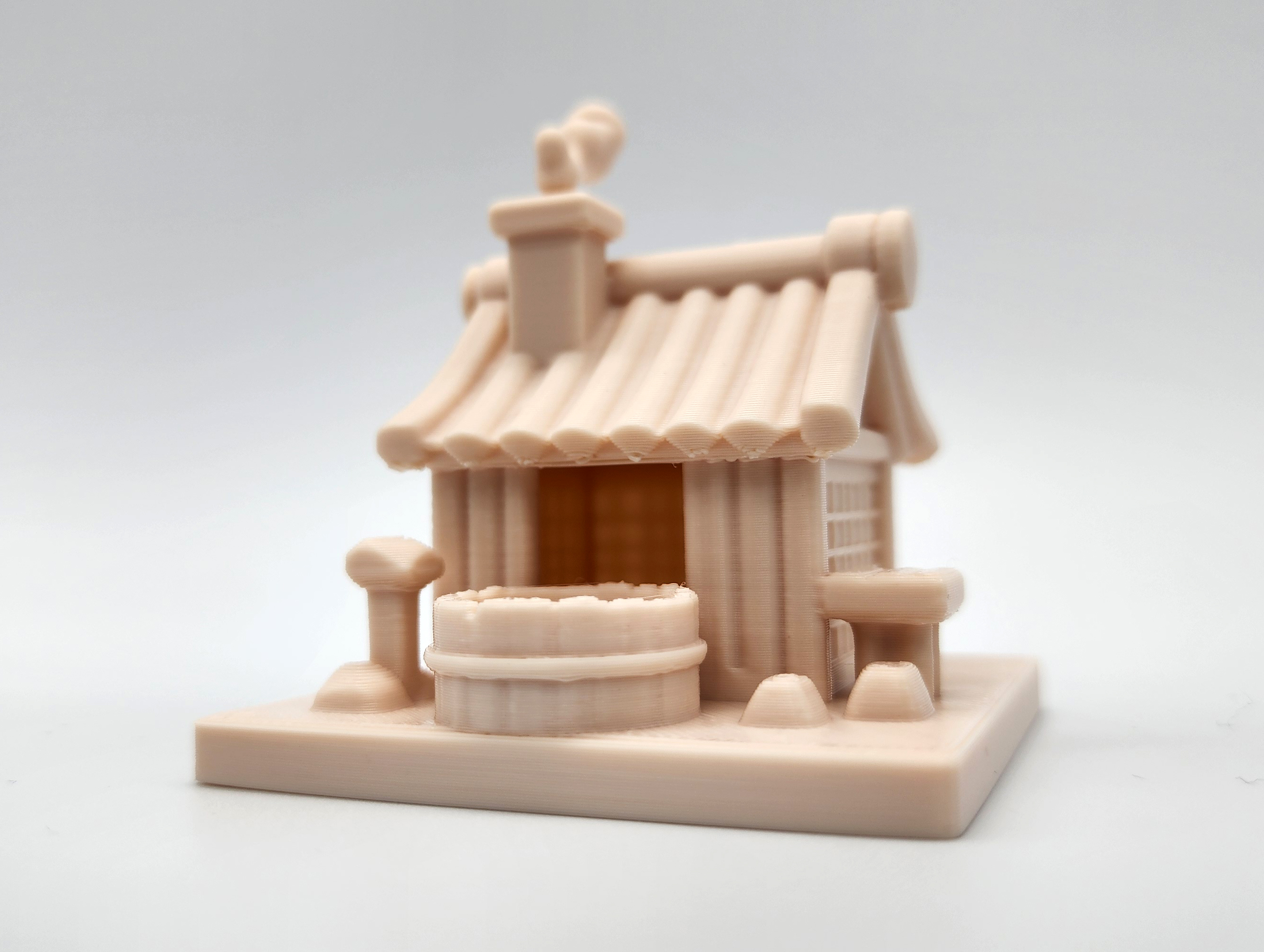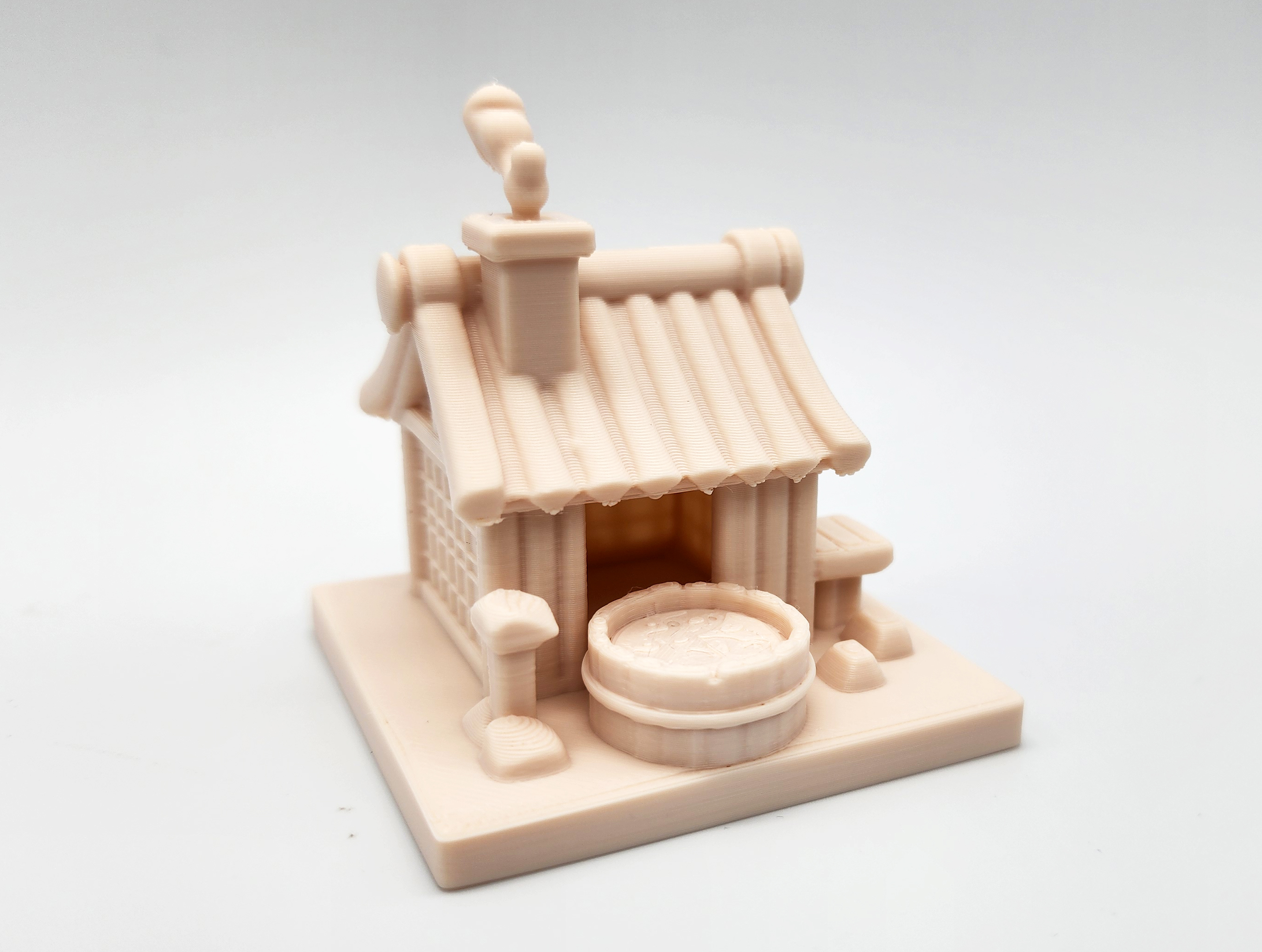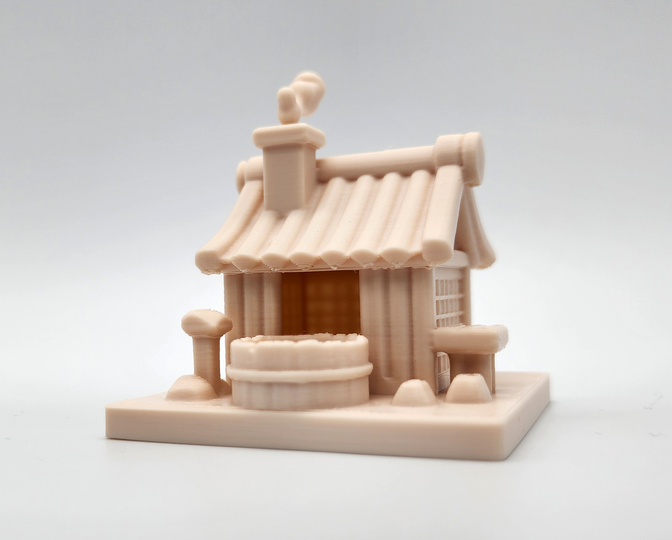 Mô hình suối nước nóng kiểu Nhật này có chi tiết rất đẹp và dễ dàng gỡ bỏ các bộ phận hỗ trợ. Người dùng được khuyên dùng tree supports trên build plate cho phần mái nhà.