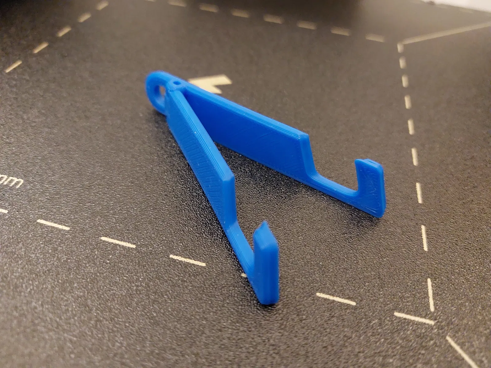 Chân đế điện thoại gấp gọn, dễ in, không cần ốc vít. Phiên bản này được cải tiến với chốt ép, không dùng nam châm. Có thể tùy chỉnh kích thước để phù hợp với điện thoại lớn hơn.