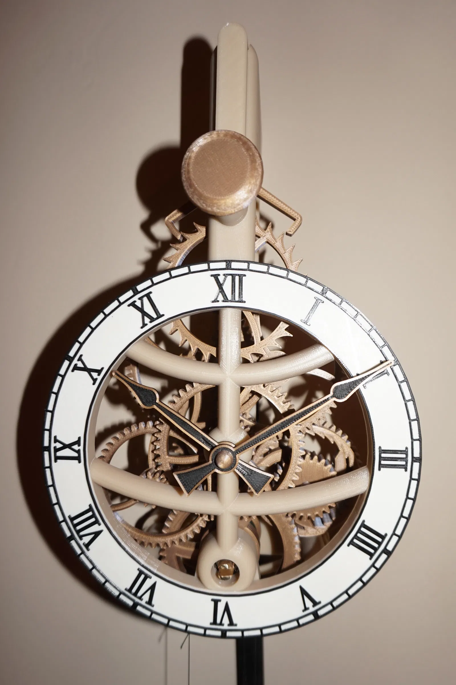 Đây là một chiếc đồng hồ quả lắc in 3D với thời gian chạy 8 ngày và độ chính xác khoảng 1-2 phút mỗi tuần.
