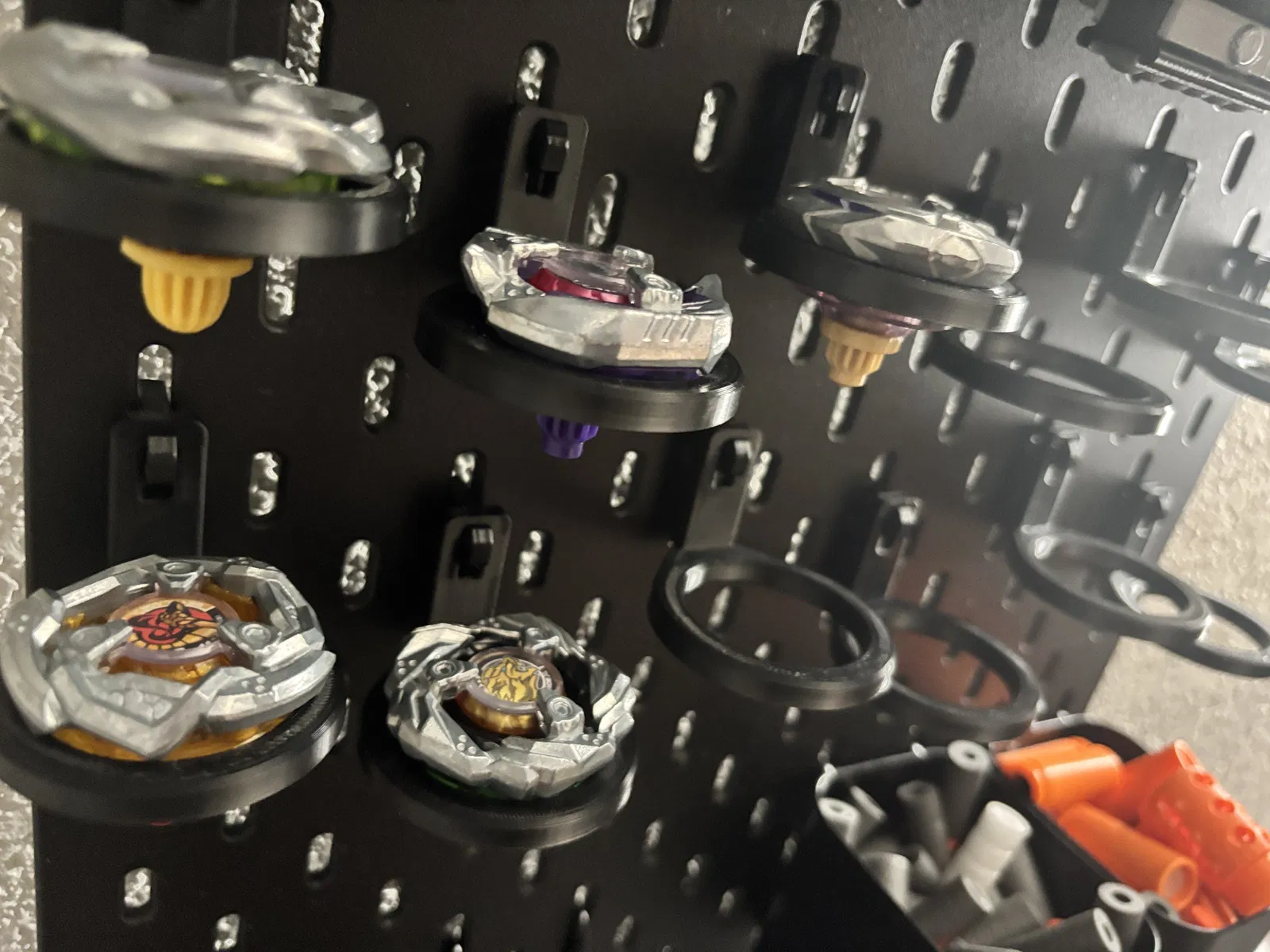 Một giải pháp đơn giản để trưng bày bộ sưu tập Beyblade X của bạn trên bảng pegboard Skadis. Dễ dàng in và lắp đặt, giúp bạn sắp xếp Beyblade gọn gàng và khoe được chúng.