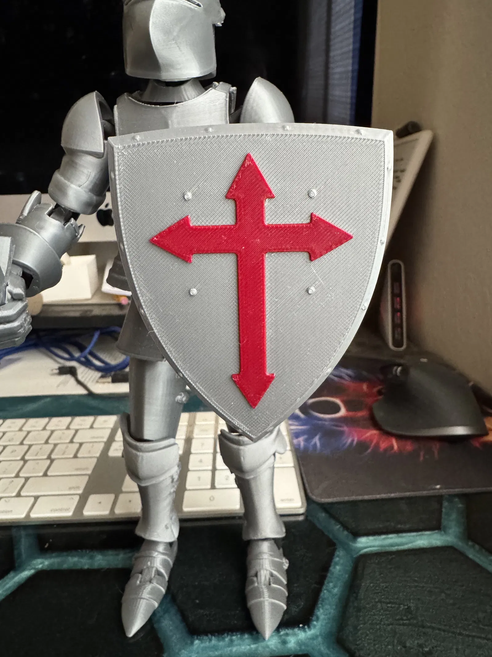 Một phiên bản tùy chỉnh của khiên Crusader Shield dành cho bộ giáp Hiệp Sĩ Dummy 13 của Martin_44601. Thiết kế này đã được thêm đinh tán và thánh giá, in ở tỉ lệ 200%. Người dùng cần dán tay cầm sau khi in và có thể tùy chỉnh màu sắc.