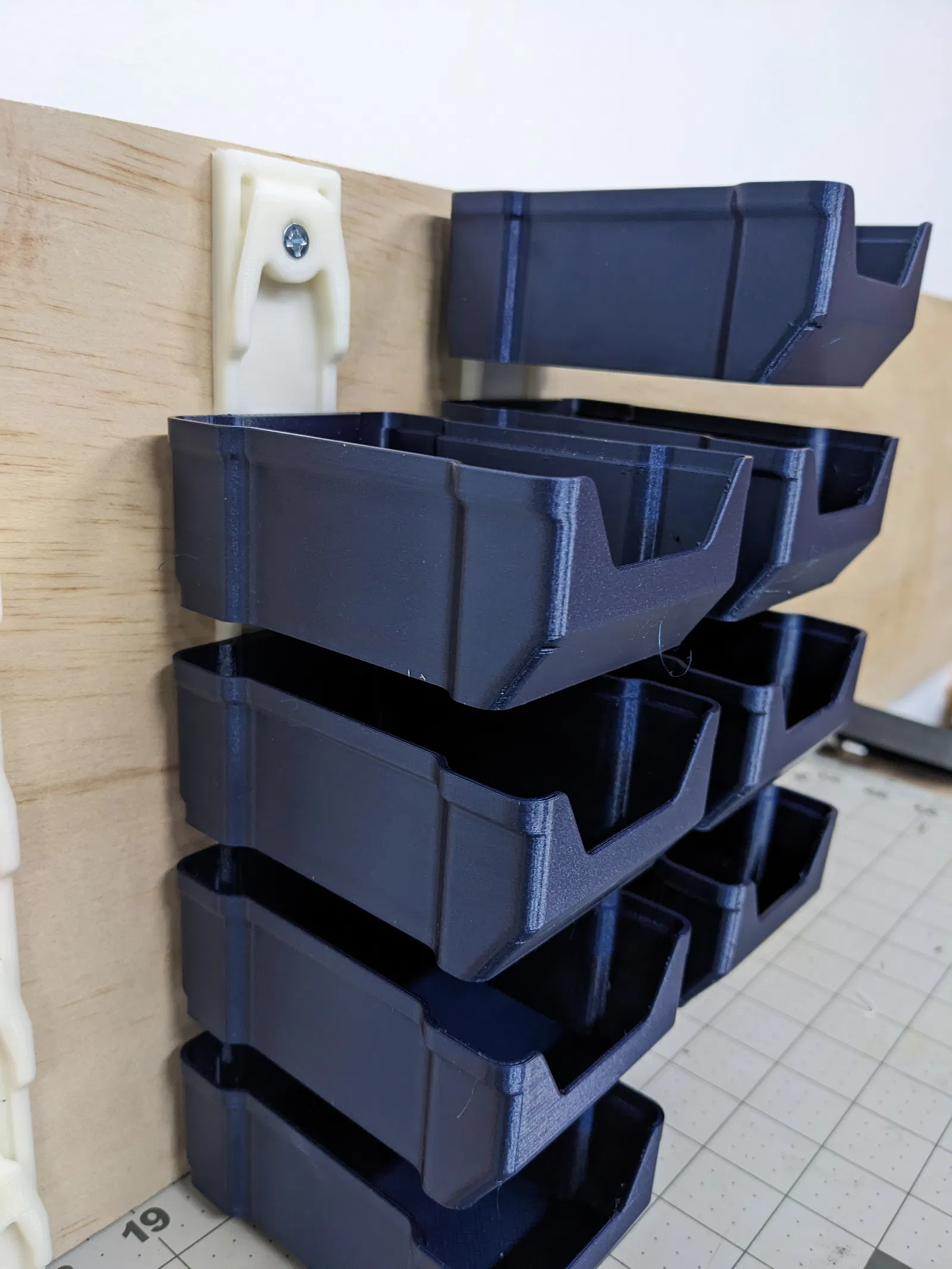 Mấy cái hộp nhỏ này có thể xếp chồng lên nhau hoặc treo tường. Rất tuyệt để sắp xếp ốc vít và các vật dụng nhỏ, linh tinh khác trong nhà hoặc xưởng. Tới giờ tui mới thiết kế được hai kích cỡ hộp, nhưng tui có ý định thiết kế thêm vài cái nữa. Tui làm mấy cái này đặc biệt cho nhu cầu của tui trong xưởng làm việc, nhưng vì tui thấy nó cũng ổn nên tui chia sẻ cho mọi người luôn.