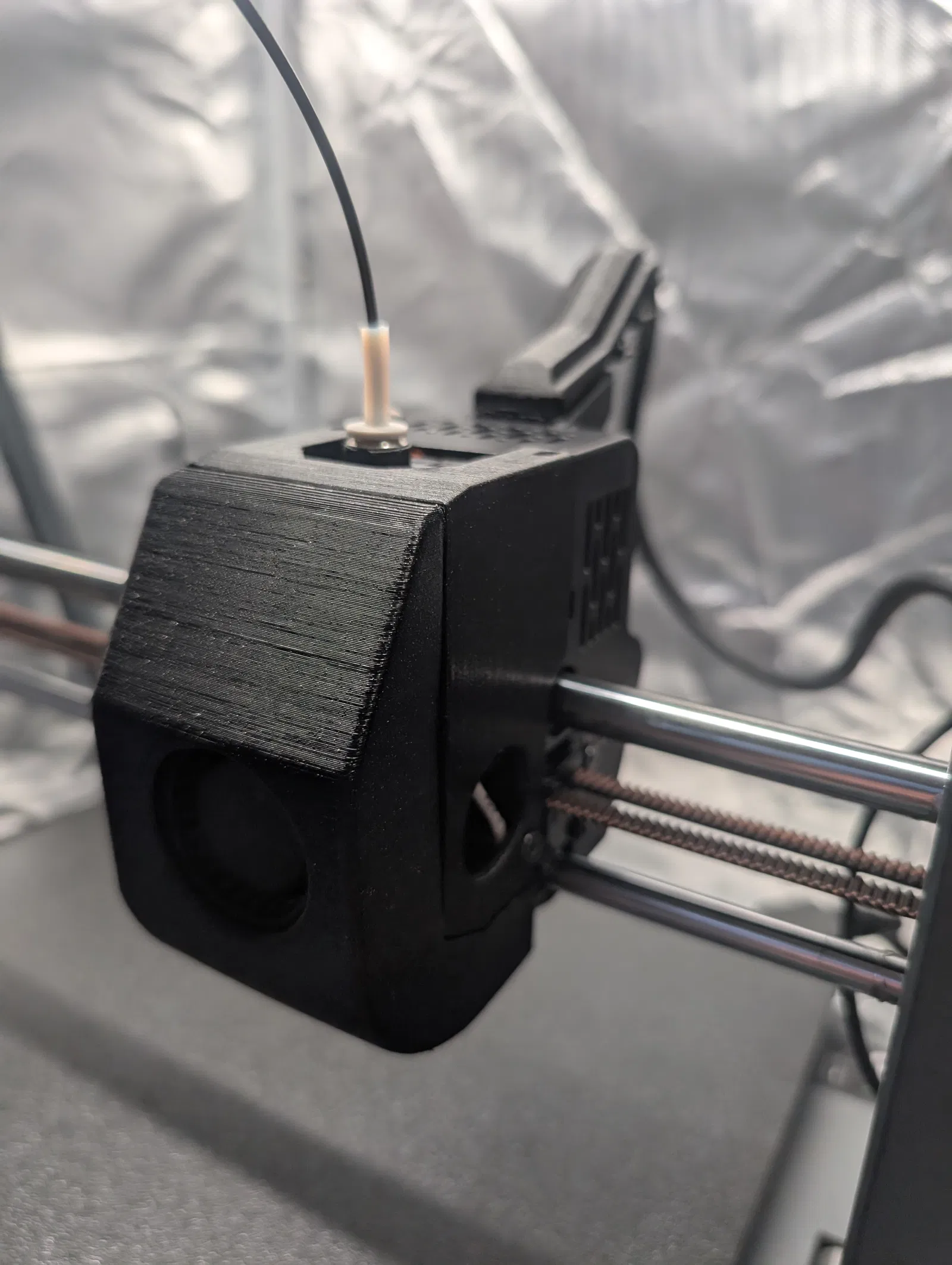 Tôi in cái này bằng ASA với 40% infill, 4 lớp tường. Tui khuyên dùng ASA hoặc ABS vì nó sẽ ở gần nozzle, nhưng có thể bạn xài PETG cũng được. Tui in với supports tự động dạng cây, phần cowl in đứng và phần bracket có mount quạt thì áp sát vô build plate. Xem file 3MF nha. Tui cũng gửi kèm file step phòng trường hợp ai muốn chỉnh sửa cho V3 (không phải plus) hoặc vì bất kỳ lý do nào khác.