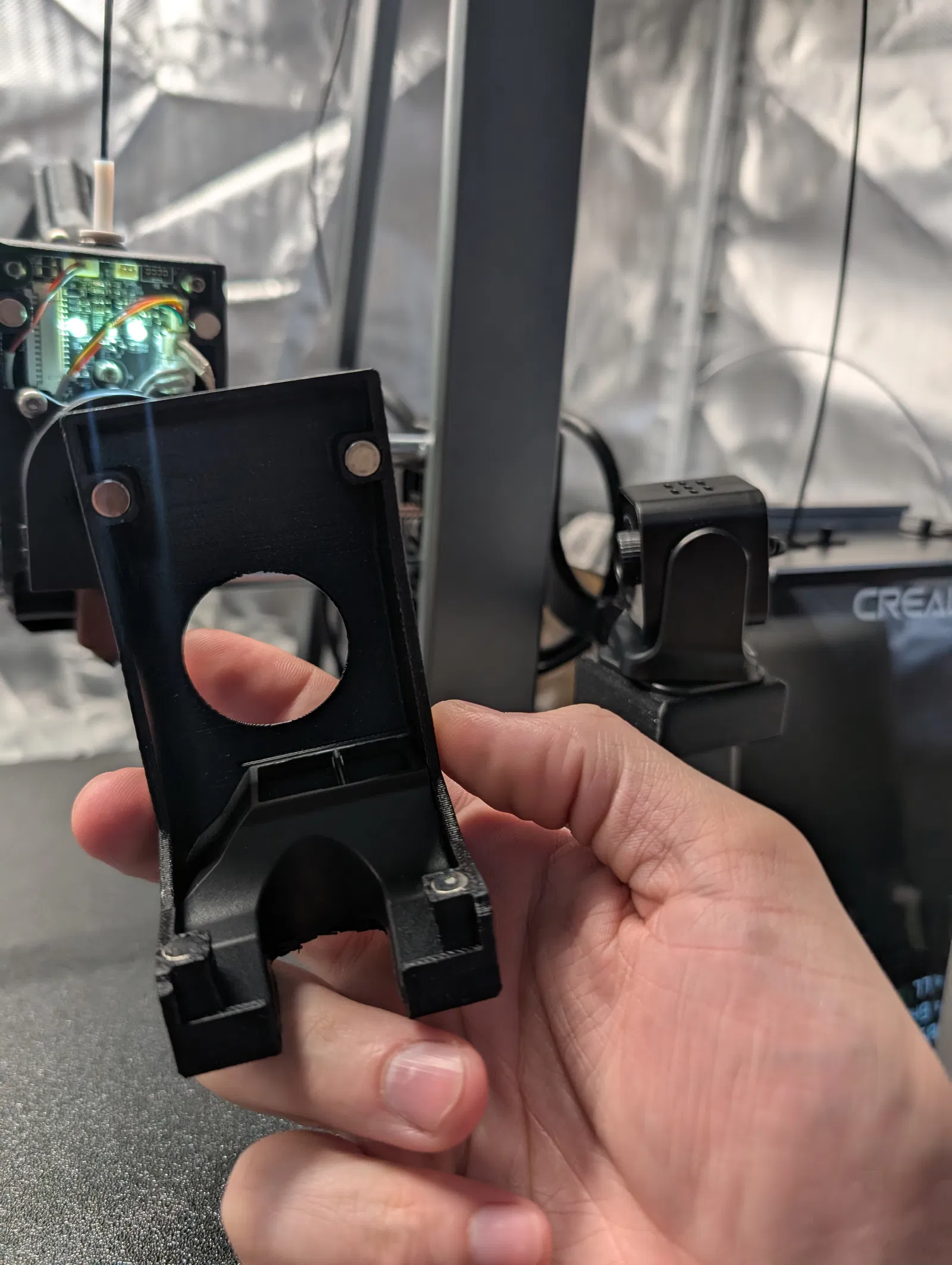 CẬP NHẬT 1/20/25 - LÀM ƠN DÁN KEO MẤY CÁI NAM CHÂM VÔ NHA! Mấy cái nam châm ép của tui cuối cùng cũng lỏng ra khi nó đủ ấm, rồi nó rơi ra, hậu quả là cover toolhead bị bung và văng ra khỏi máy in, dẫn tới in thất bại. Không có gì thảm khốc, nhưng mà không thích tí nào.