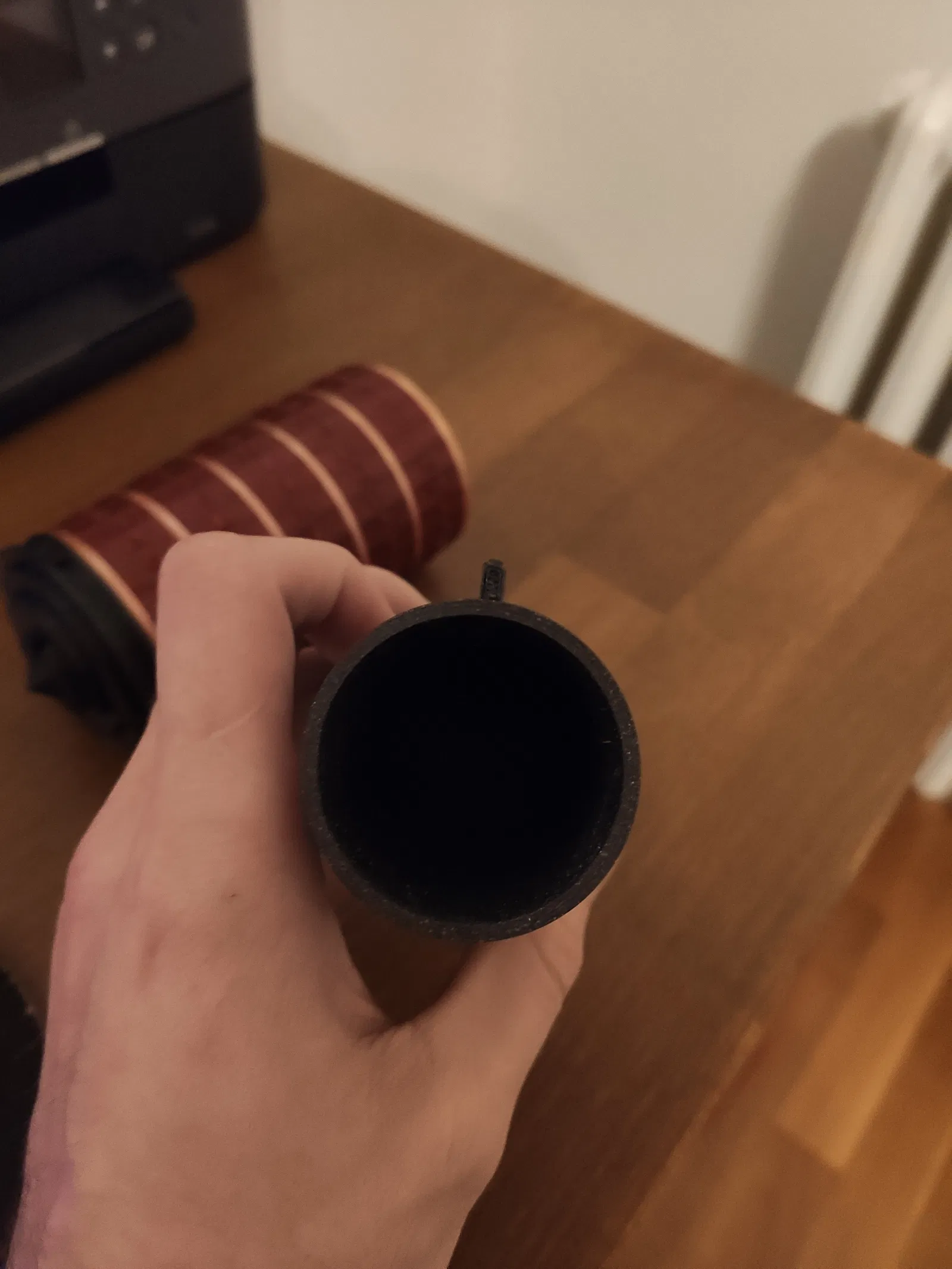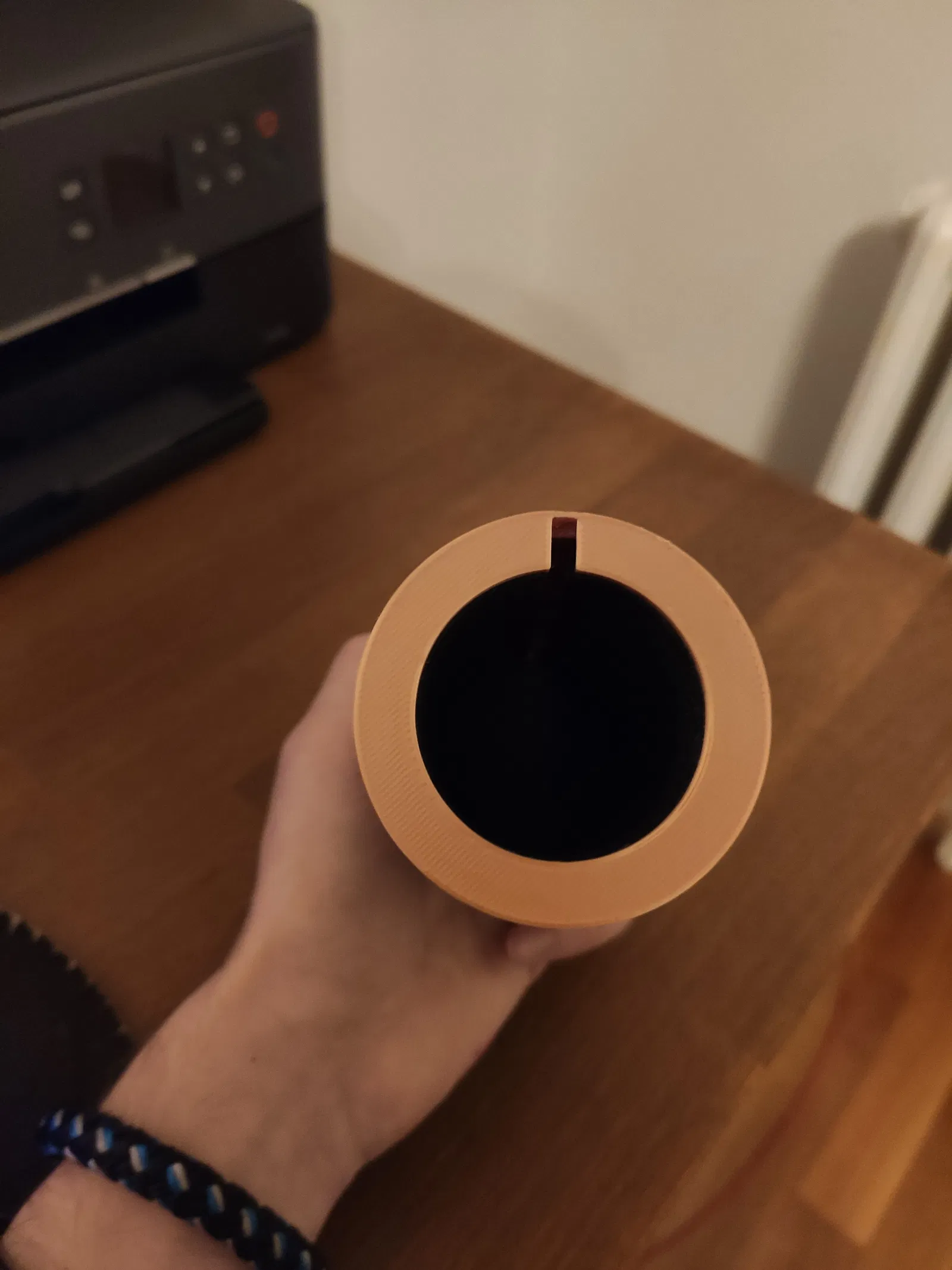- Căn cái rãnh nhỏ bên trong "móc khóa (in ra 5 cái)" đầu tiên với khe trên "ống ngoài"
