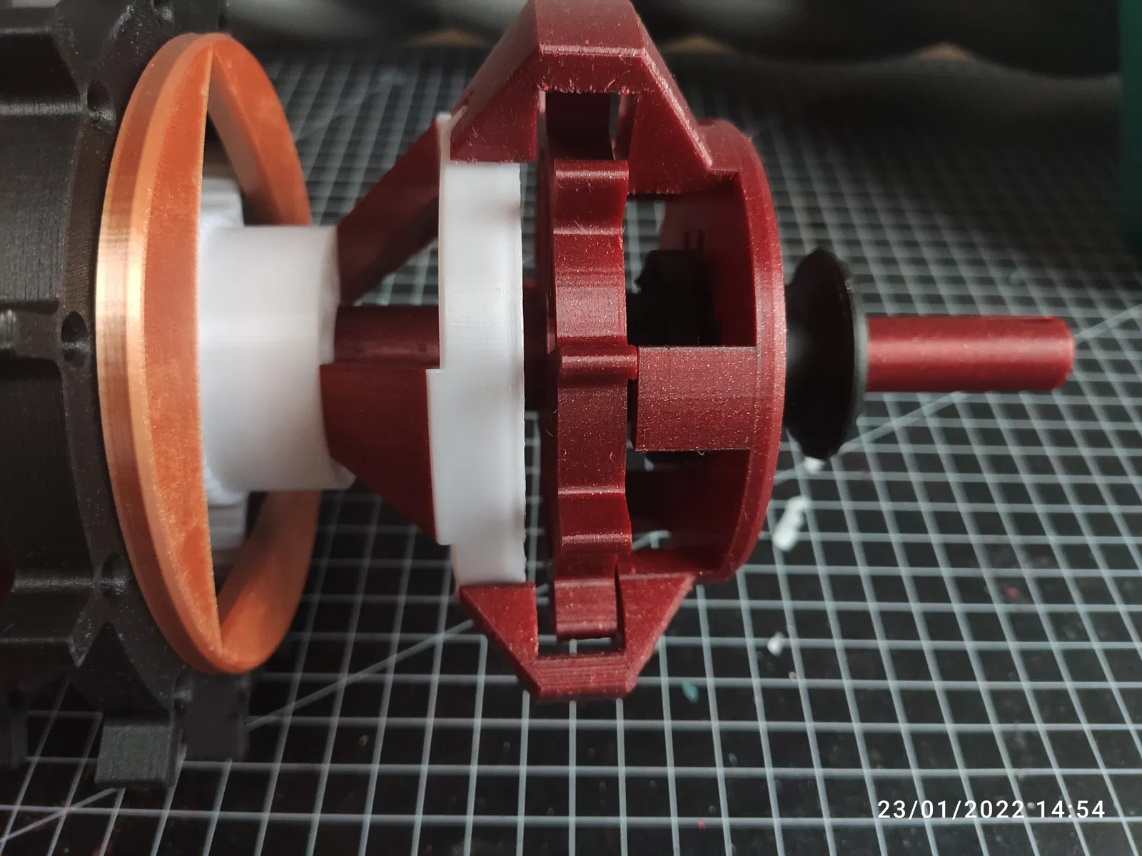 - Đẩy các chốt trên "planet carrier front (bộ thứ ba)" hoàn toàn vào bánh răng hành tinh của bộ thứ hai, một lần nữa hãy cẩn thận hư hỏng bộ phận đã in.