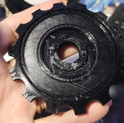 - Sau khi in bánh răng, nên chà nhám/dũa các cạnh bên trong để vòng bi được trơn tru hơn. Cũng có thể làm sạch các cạnh bánh răng bên ngoài tùy thuộc vào cài đặt đường viền của máy in (tui đã in mà không dùng brim và thấy kết quả tốt hơn).