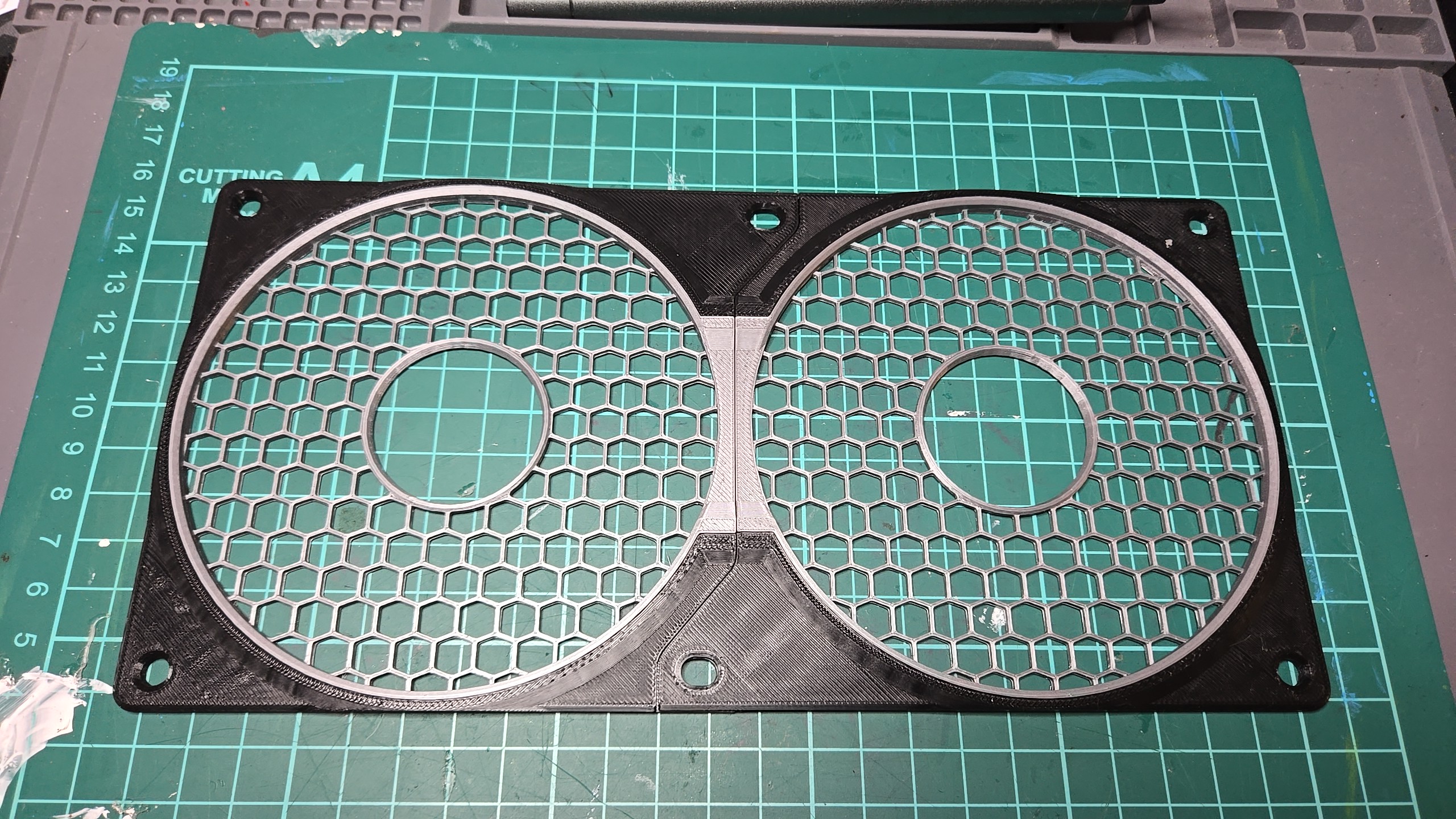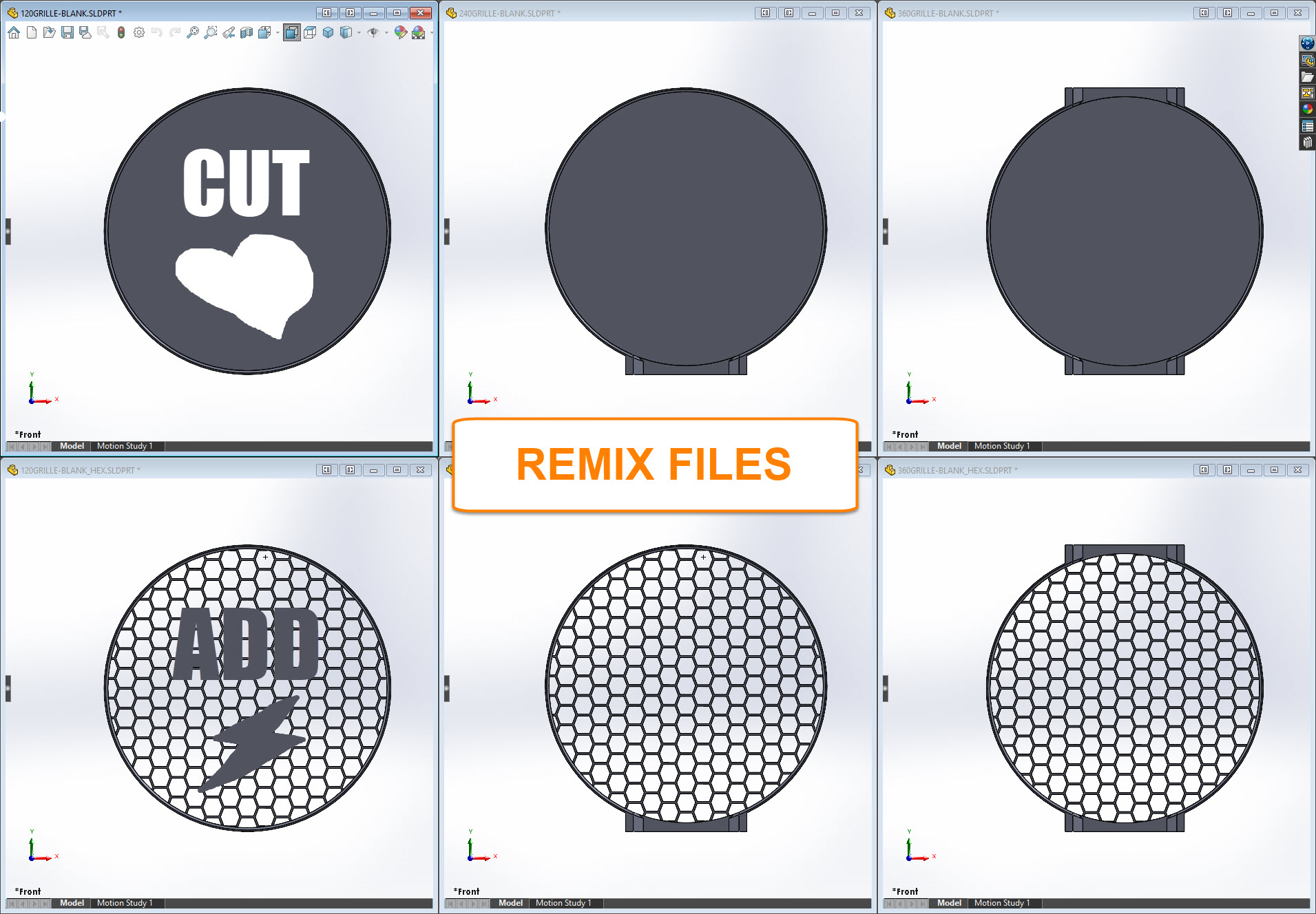 CẬP NHẬT BẢN REMIX: Đã thêm các lưới tản nhiệt trống ở định dạng .STEP, một cái hoàn toàn đặc để bạn tự cắt thiết kế của mình và một cái chỉ có họa tiết lục giác để bạn có thể kéo dài thiết kế của mình lên. Sáu thiết kế này nằm trong tệp FanSwap REMIX STEP grille files.zip