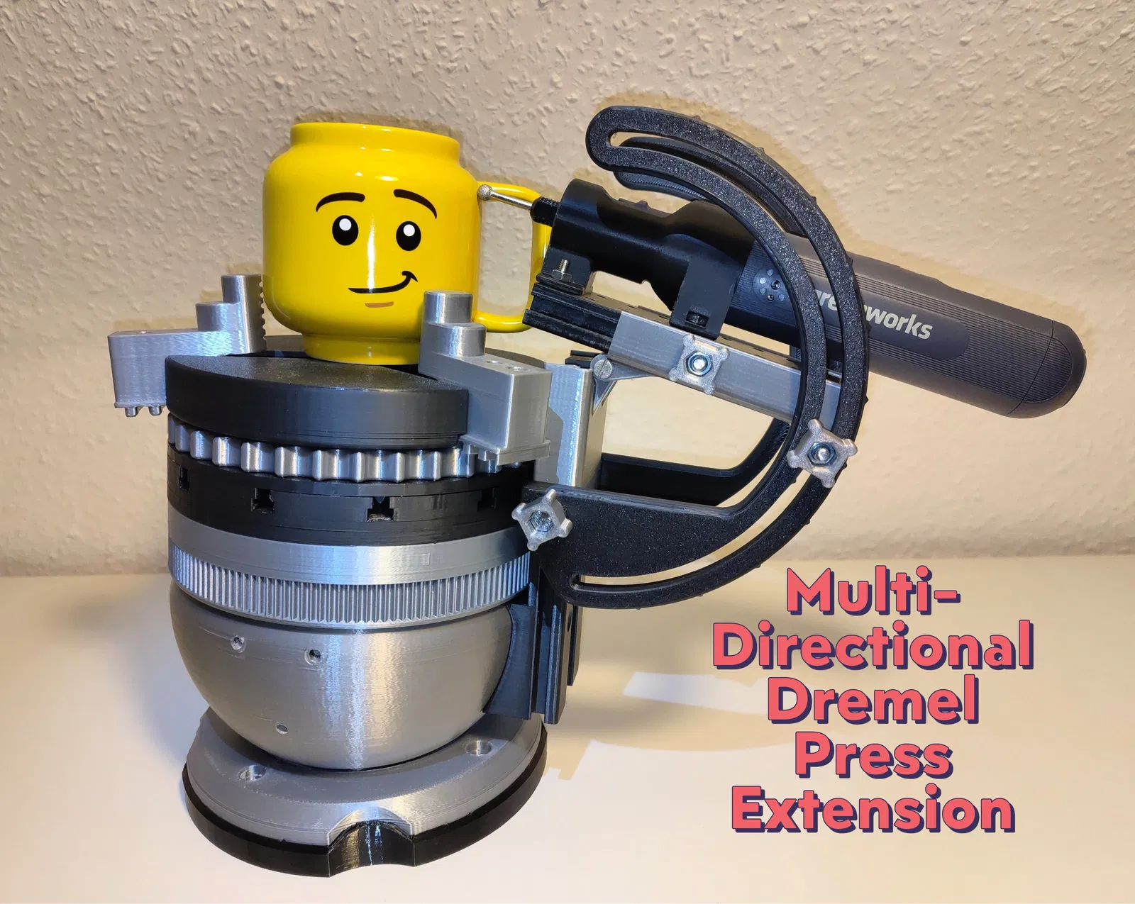 Ba bộ gá kẹp là bản chỉnh sửa của mẫu 'round vice - 3 point clamp' của 93djen, tôi đã thiết kế lại để căn chỉnh hoàn hảo. Bạn có thể tìm thấy nó tại đây: