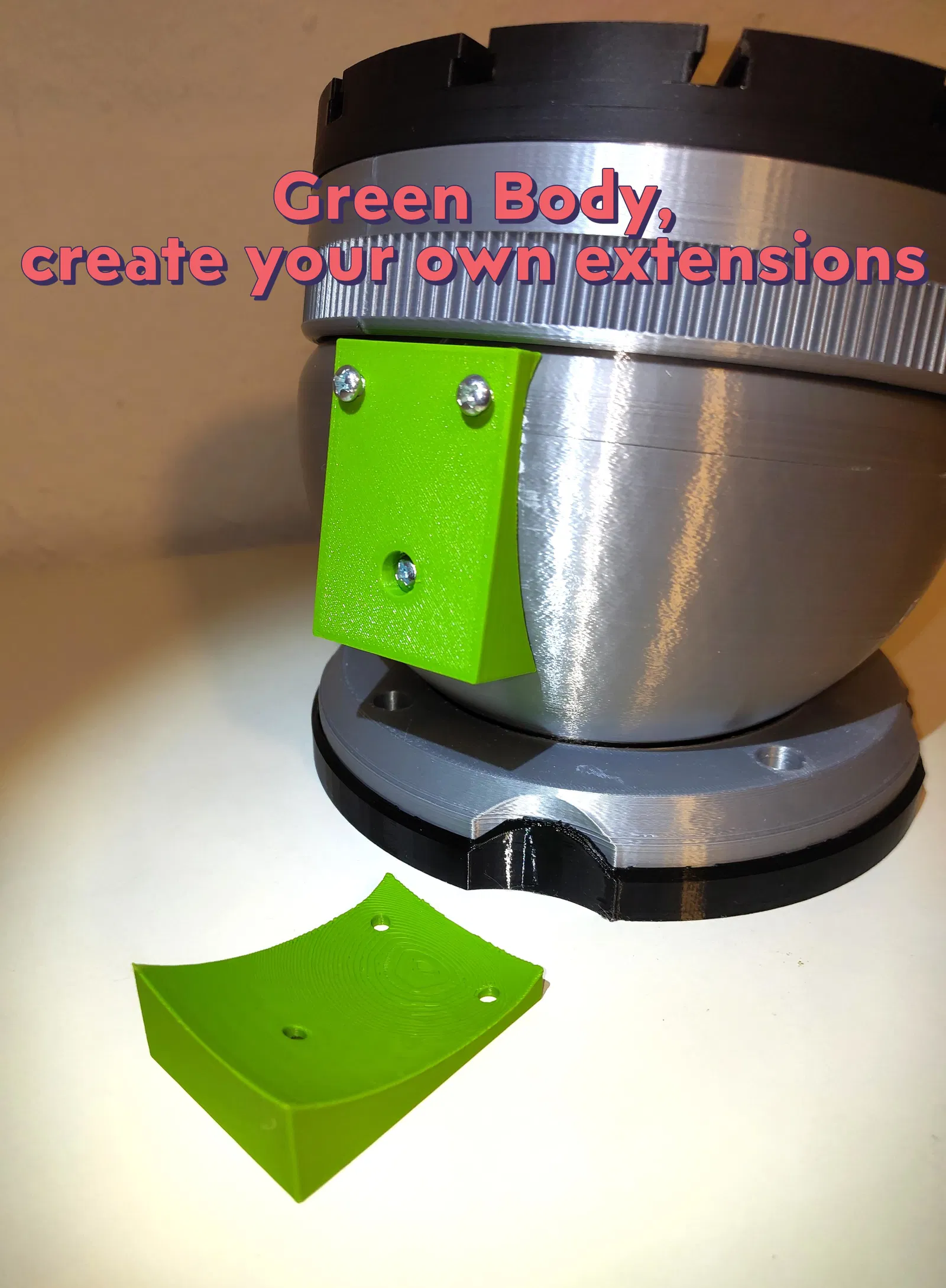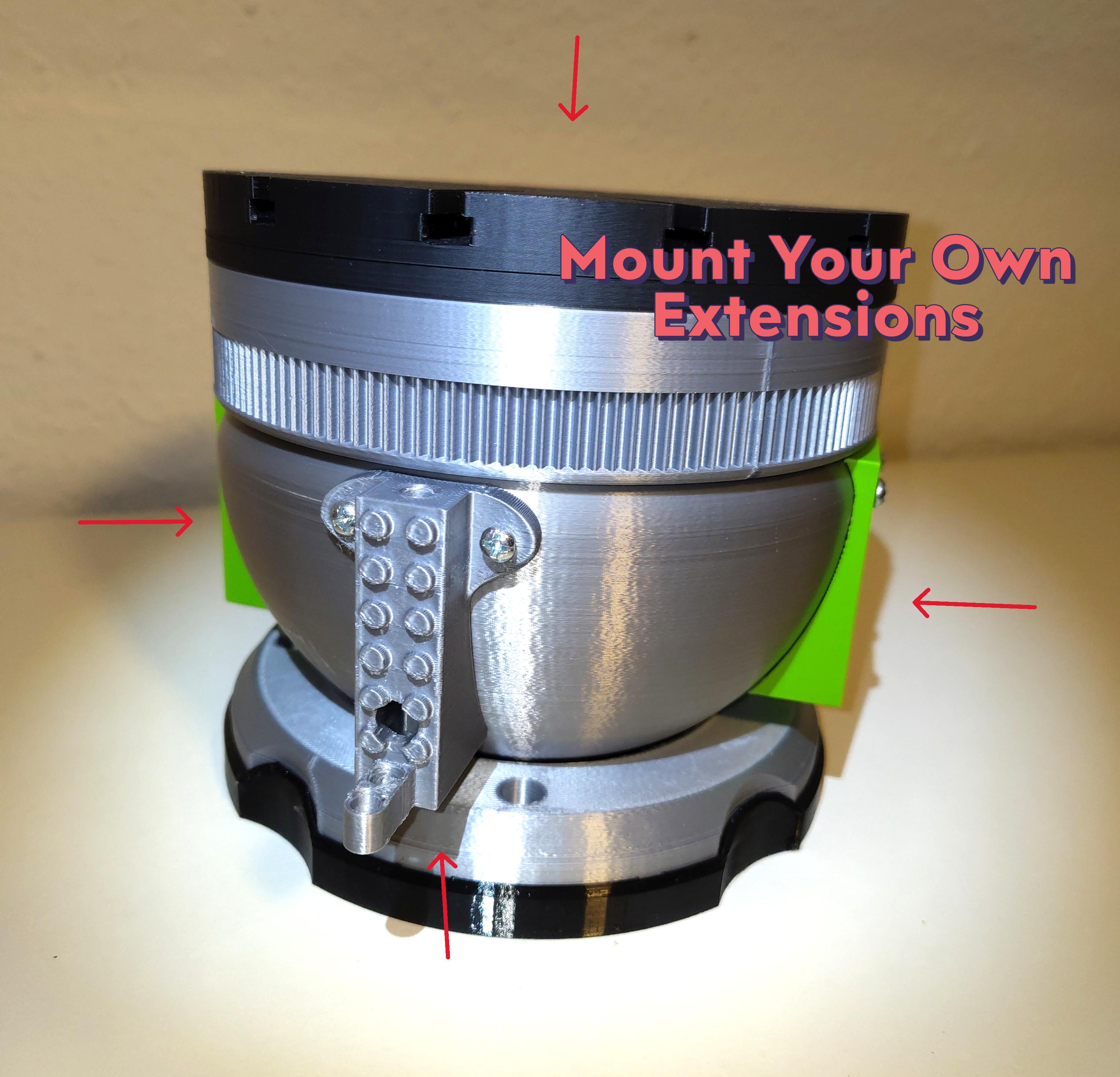 Các tính năng chính của bản thiết kế lại này là các bộ phận gắn bên hông và đế gắn linh hoạt. Tôi đã thêm các bộ phận màu xanh lá cây để mỗi người có thể tùy chỉnh chúng với những ý tưởng mới: