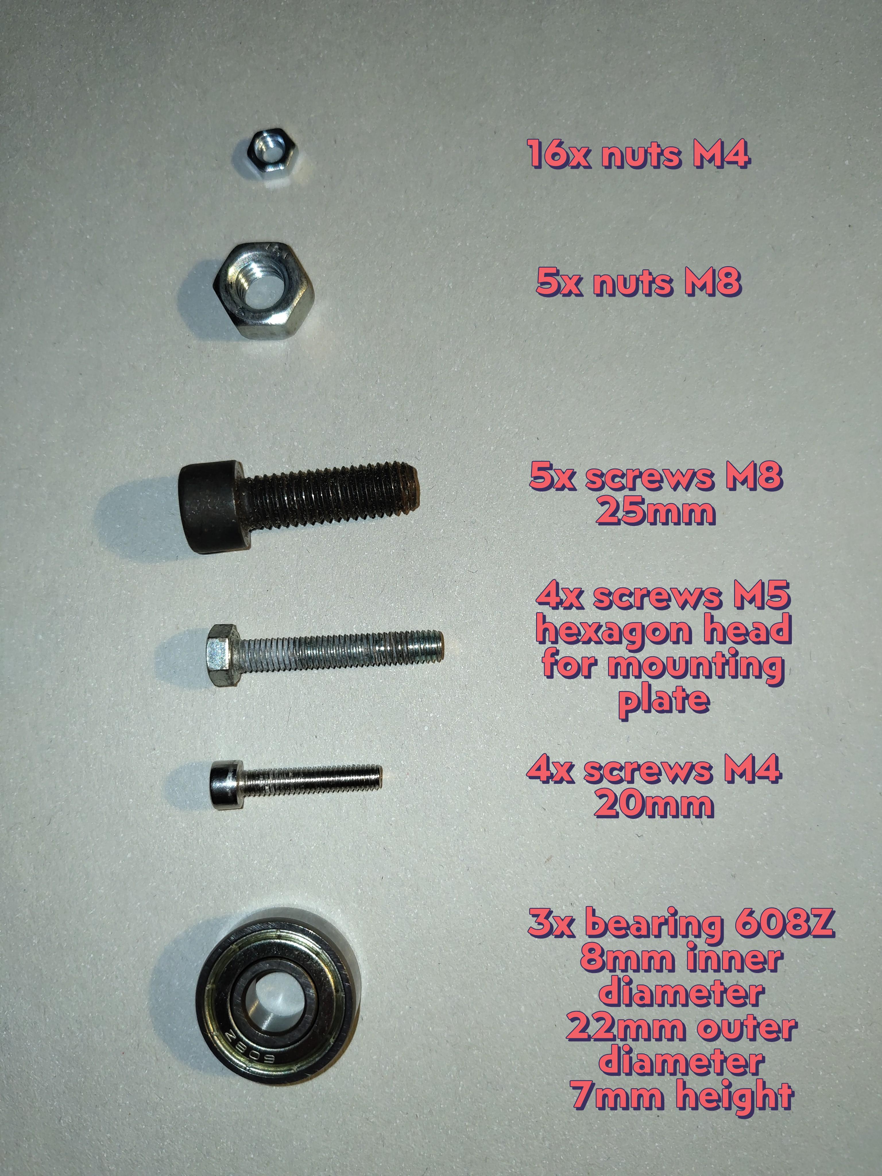 Để cố định bộ giữ đai ốc và các đai ốc M8, chúng ta cần thêm một số bộ phận, nhưng chỉ tạm thời thôi. Sau khi đổ bê tông, các bộ phận này không còn cần thiết nữa: