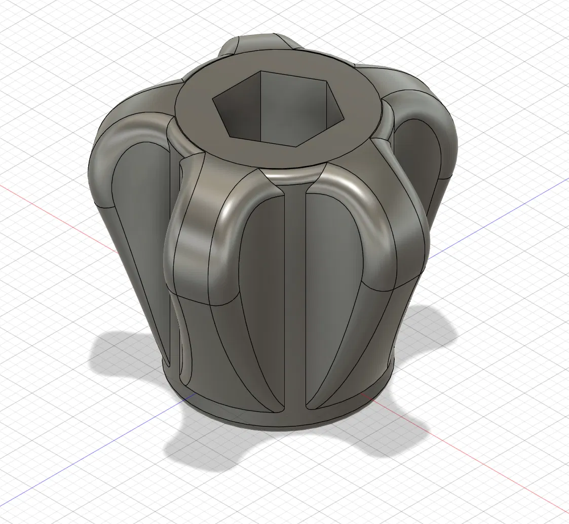 Đây là một núm xoay (knob) đẹp mắt, có thể dùng cho Bu-lông hoặc Đai ốc M6. Tôi cũng đính kèm file Fusion để bạn chỉnh sửa nếu cần.