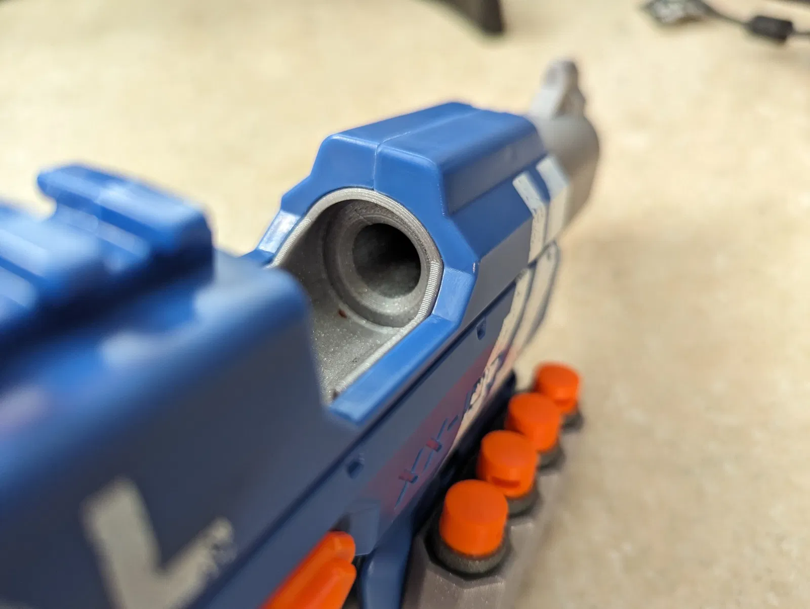 Trong nhiều năm, mọi người đã điều chỉnh loại trực tiếp của đối thủ Nerf vì sức mạnh, kích thước và sự đơn giản của nó; Đó là một blaster tuyệt vời. Mặc dù vậy, việc sửa đổi nó để bắn phi tiêu ngắn trong lịch sử là một nỗi đau. Cho dù bạn đang sử dụng đồng thau, nhôm hoặc polycarbonate, mỗi mod đều mất nhiều thời gian và kết quả không nhất quán. Nòng in 3D này nhằm mục đích loại bỏ phần lớn công việc trong khi tạo ra kết quả nhân rộng. Phi tiêu ngắn cho tất cả! Bên cạnh đó, một cặp kìm (đối với các thanh kim loại bị kẹt), một số snips, tuốc nơ vít và một số mỡ silicon (tùy chọn) sẽ có ích. Bộ điều hợp giá đỡ phi tiêu ngắn có thể được tìm thấy ở đây và một phiên bản mở rộng cũng có sẵn ở đây. Hầu hết thời gian nó không gặp rắc rối, nhưng bạn có thể thêm một chiếc bè hoặc vành nếu bạn muốn ở bên an toàn. Bạn có thể muốn cắt giảm bộ hạn chế không khí nhiều hơn để tăng lưu lượng không khí và vận tốc phi tiêu. Để nói về việc tạo nhịp Aeon Pro). Bạn có thể thoát khỏi mà không có nó, nhưng tôi không khuyên bạn nên điều đó. Ngoài ra, bên trong thùng được cố ý chặt chẽ. Khi phi tiêu ngắn được sử dụng, chúng bị mòn và bọt được nén, làm cho một sự lỏng lẻo hơn. Nòng súng là kích thước cụ thể này để phi tiêu không rơi ra khi máy pha chuyển động.