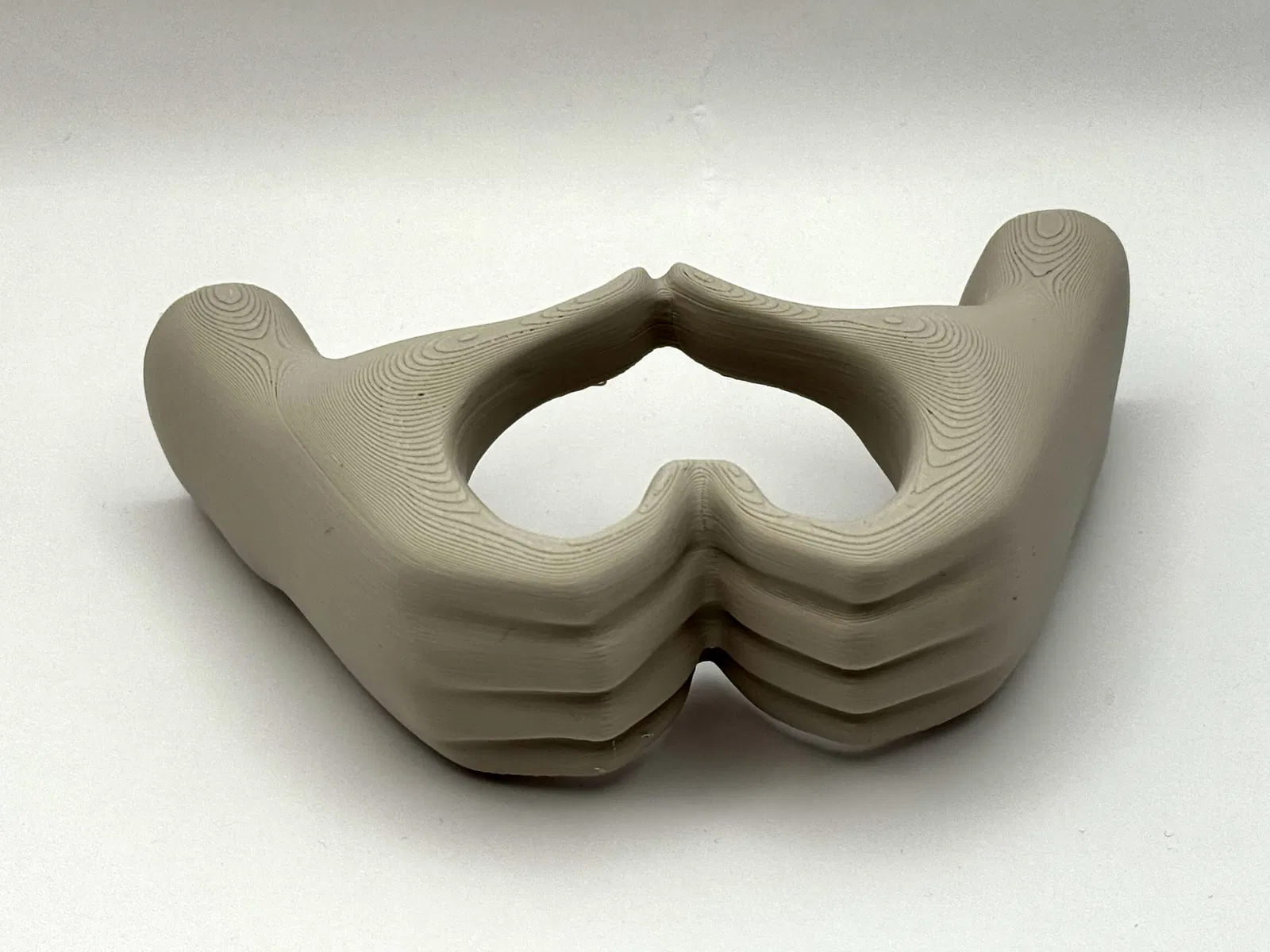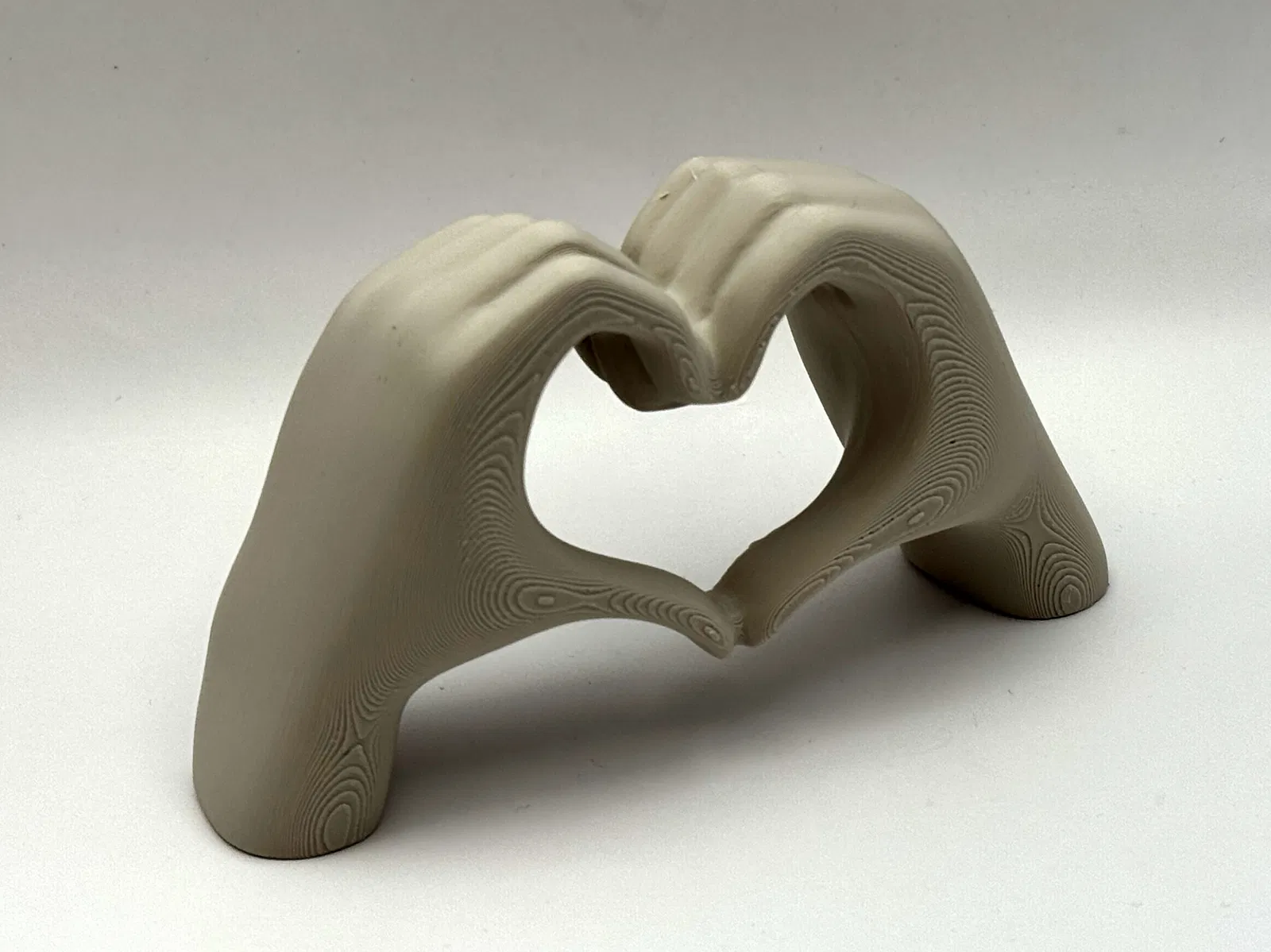 Tượng hai bàn tay đan vào nhau tạo hình trái tim, biểu tượng cho tình yêu đôi lứa, thích hợp làm vật trang trí hoặc quà tặng Valentine. Mô hình cần hỗ trợ khi in nhưng dễ dàng gỡ bỏ.
