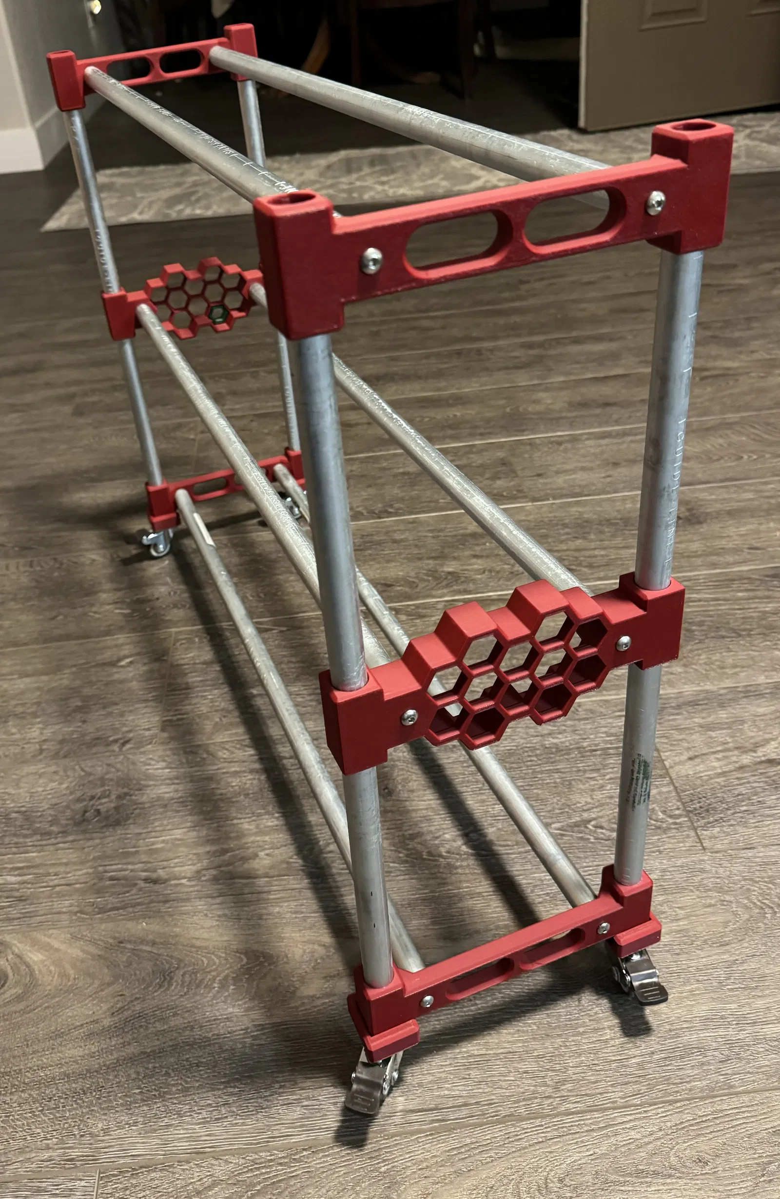 - 8 thanh dọc 230mm (9 inch) (nhỏ hơn 220mm bạn sẽ gặp khó khăn khi lấy dây tóc ra, nhưng có thể cần thiết cho bàn làm việc thấp hơn) (vui lòng cho tôi biết nếu đây là vấn đề, có những cách khác để gắn bánh xe có thể cải thiện/giảm chiều cao tổng thể)