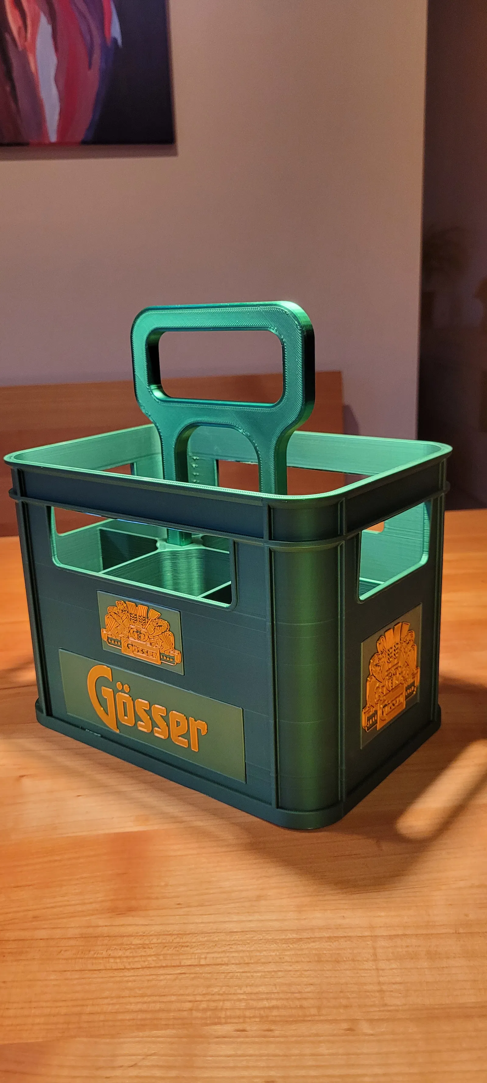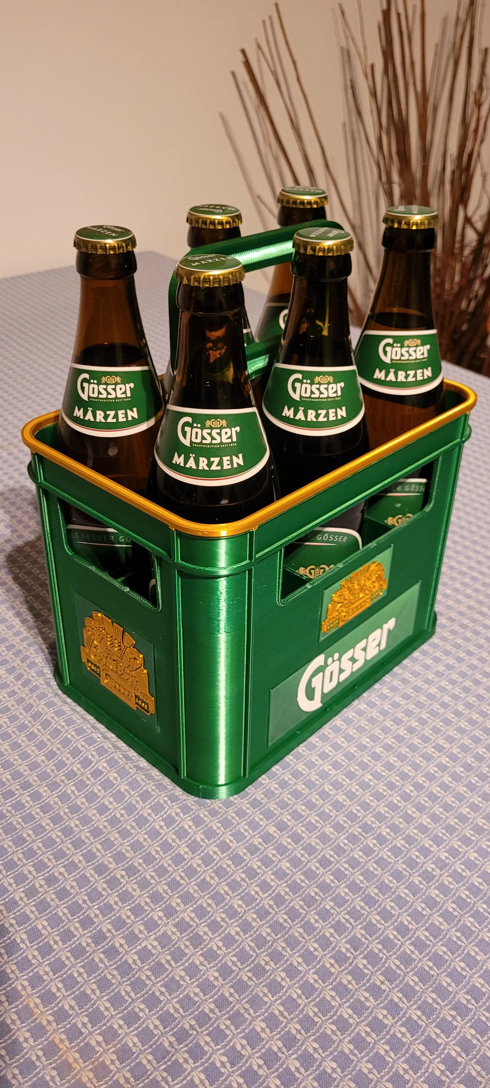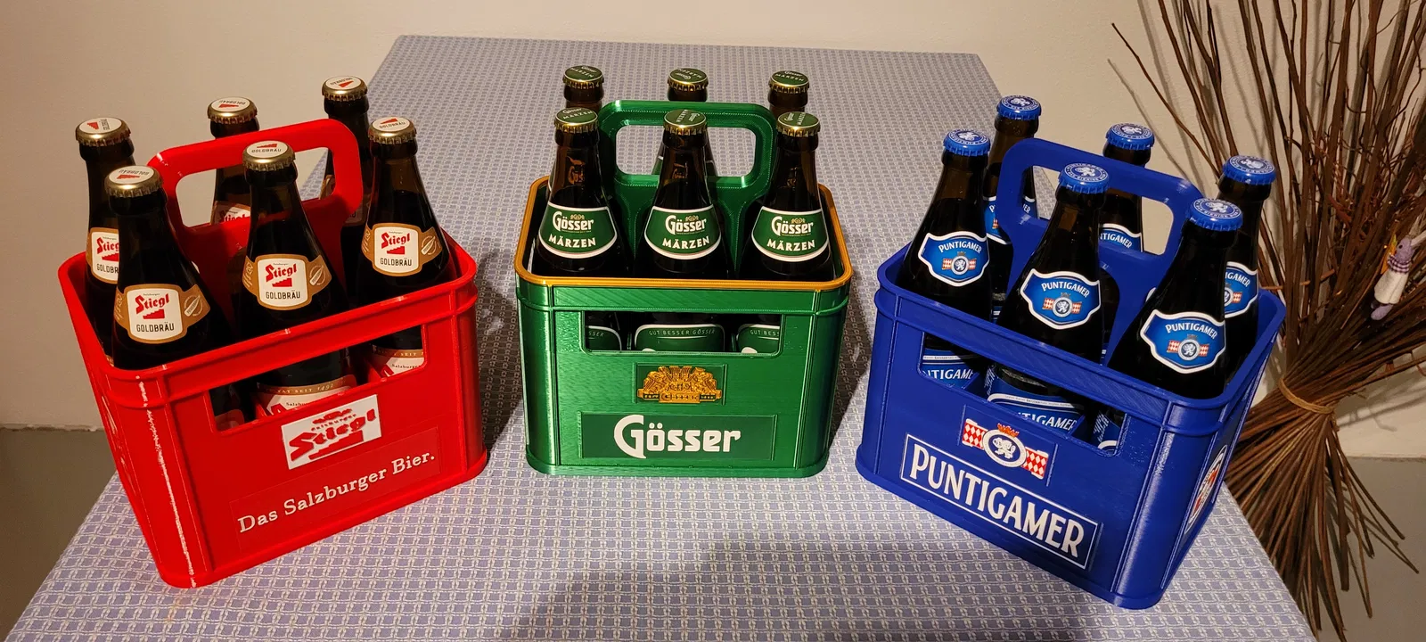 Giá đỡ sáu chai bia được thiết kế cho chai 0.5l NRW, cho phép bạn dán logo tùy chỉnh. Bản cập nhật mới nhất thêm tùy chọn hộp không có lỗ khoét và các logo thương hiệu bia phổ biến. Hướng dẫn chi tiết về cách in và lắp ráp để đảm bảo độ bền tối đa cho tải trọng lên đến 5.3kg.