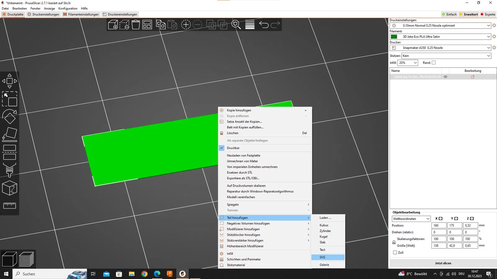 Mẹo: hãy in thử một phiên bản thu nhỏ của hộp (ví dụ: tỷ lệ 33%) với cùng vật liệu và cài đặt in mà bạn sẽ sử dụng để in kích thước đầy đủ, việc này không tốn nhiều thời gian và vật liệu, và bạn có thể sớm phát hiện và khắc phục các sự cố tiềm ẩn liên quan đến độ bám dính các lớp, độ ổn định tổng thể, v.v.