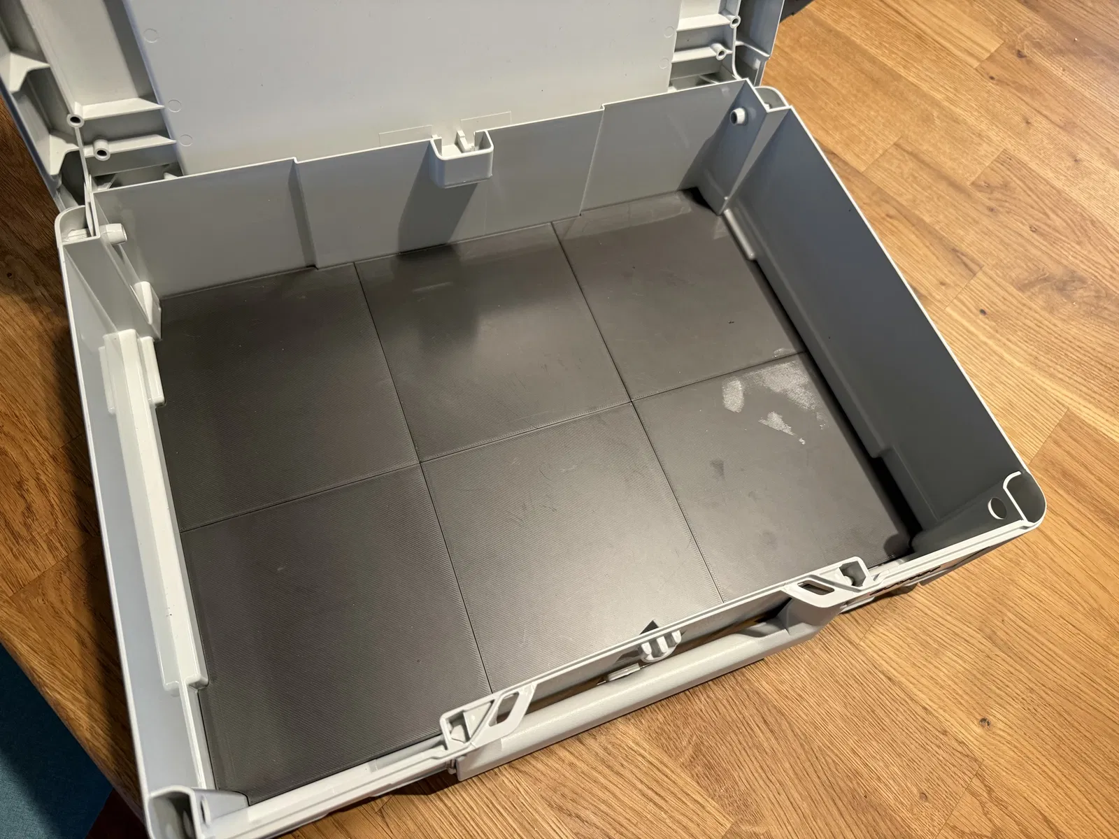 Cái đế lót cho thùng Festool Systainer, giúp đáy thùng luôn phẳng/đều. Bạn có thể in thành 6 hoặc 4 phần tùy máy in. Có thể gắn bằng ốc hoặc để nguyên vì các miếng này khớp với nhau. Có file Fusion360 cho máy in lớn.