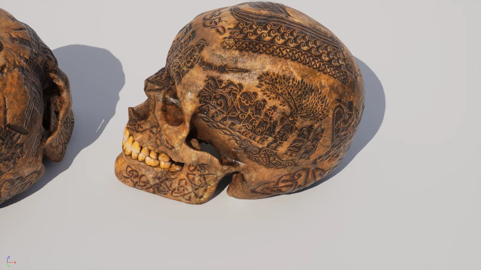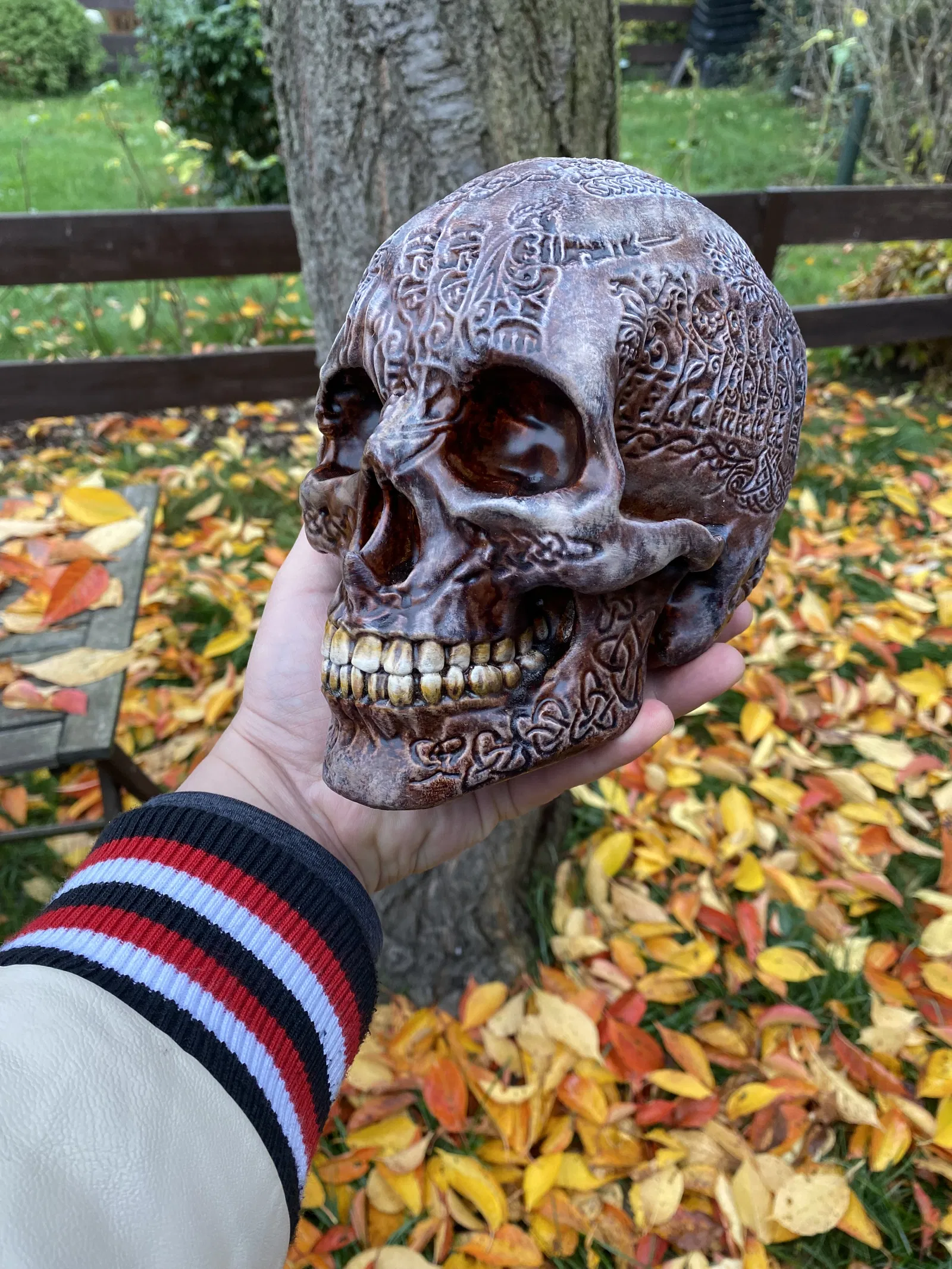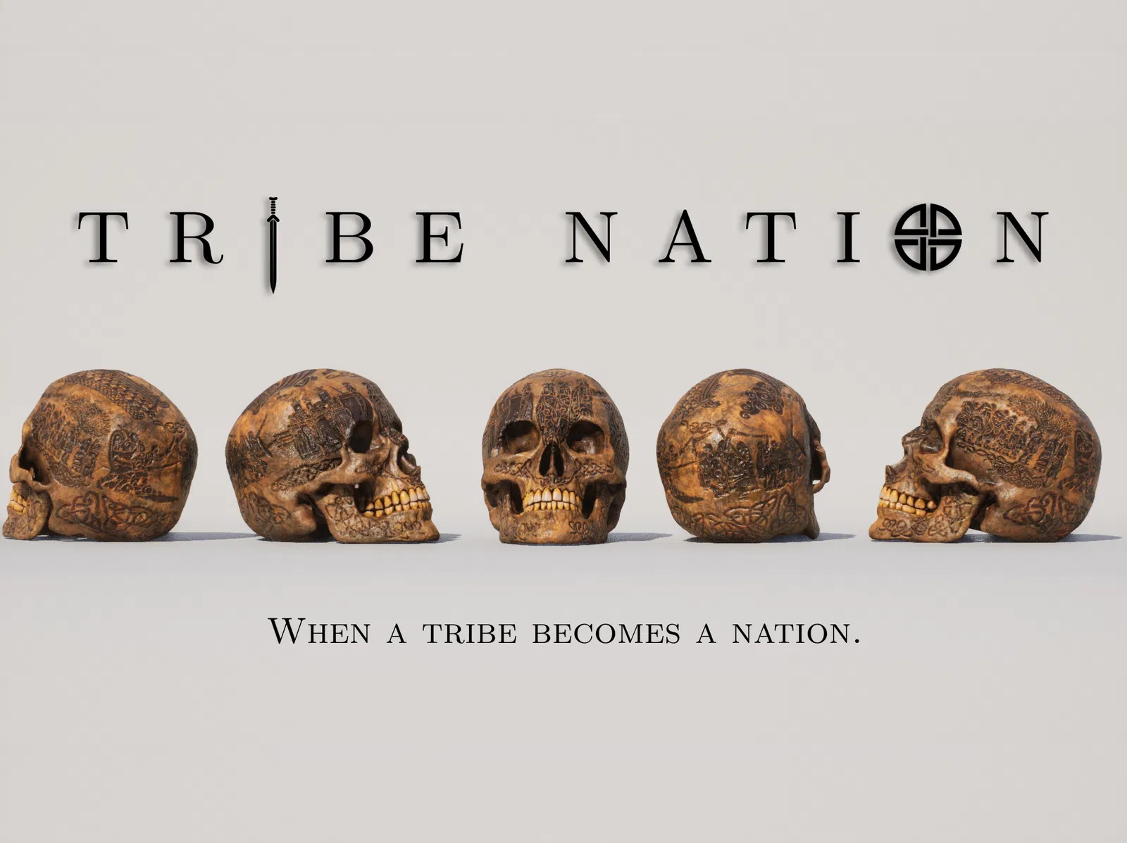 Mô hình hộp sọ của một tù trưởng người Celtic từ game 'Tribe Nation', với câu chuyện lịch sử của bộ tộc được khắc trên đó. Câu chuyện kể về hành trình ly tán và tìm kiếm quê hương mới của bộ tộc này.