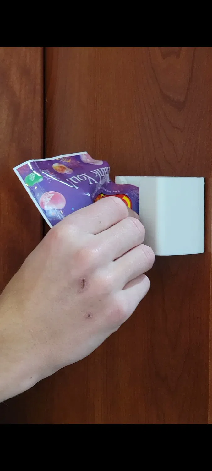 Thiết bị có thể được gắn vào bất kỳ bức tường hoặc tủ nào, cho phép một người chỉ có một bàn tay hoạt động để mở.