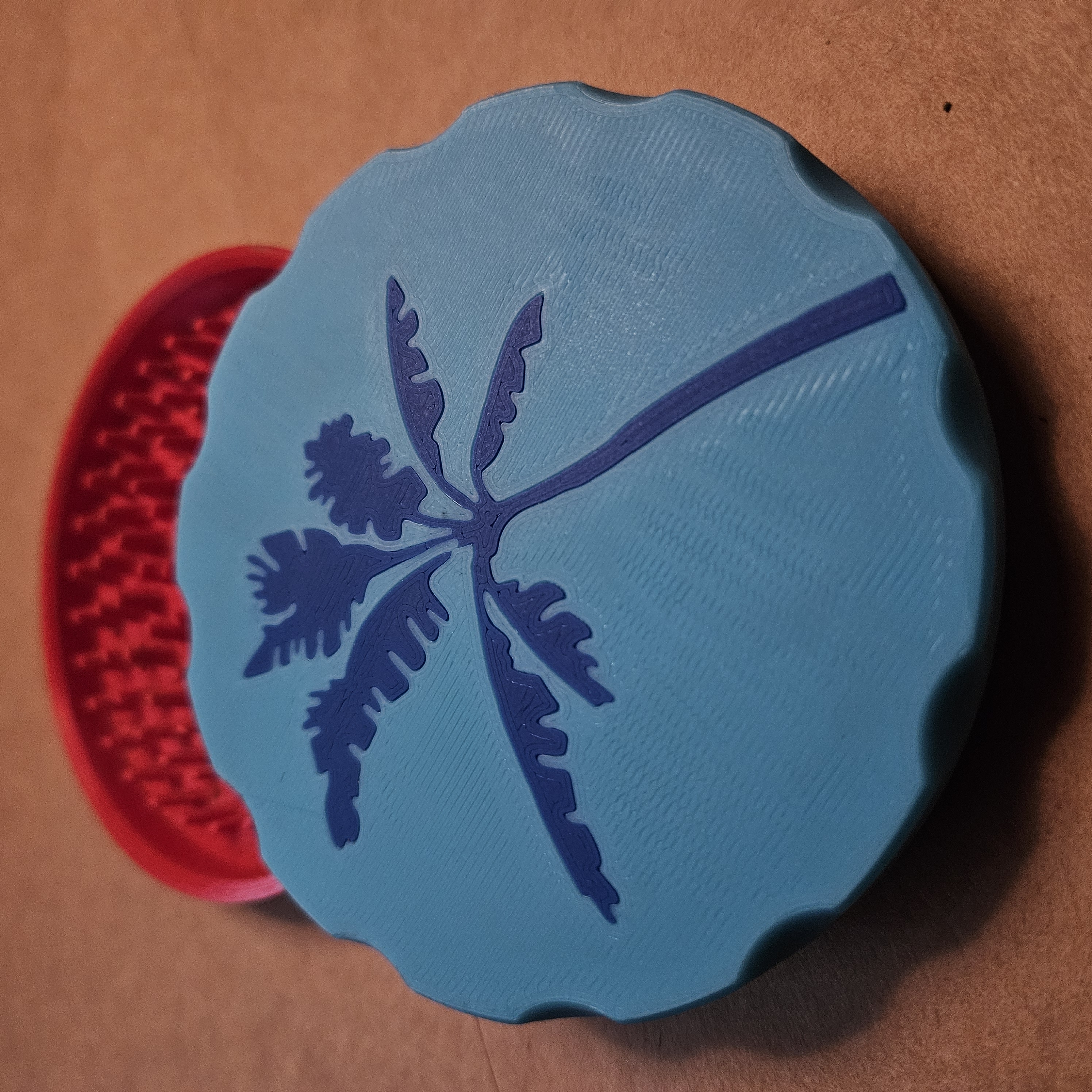 Cối xay cỏ XXL cỡ lớn, hình cây dừa, 2 màu. In với infill 40%+, không cần support. Cần nam châm 10mmx10mm và vòng đệm 10mm cho ốc.
