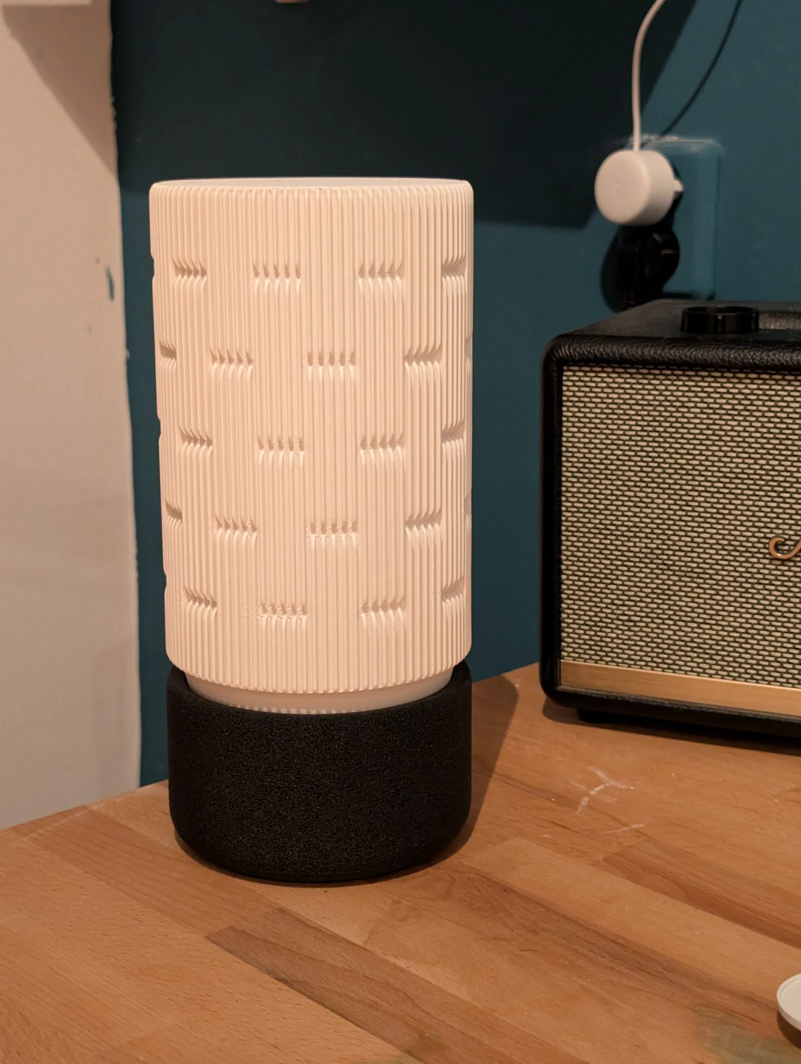 Đèn bàn Doric Hiện đại #2 gồm 2 phần, sử dụng đế có bề mặt sần (fuzzy skin). Dễ dàng lắp ráp với 1 bu lông, đai ốc M4 và đui E27. Hoàn hảo cho đồ trang trí nhà DIY.