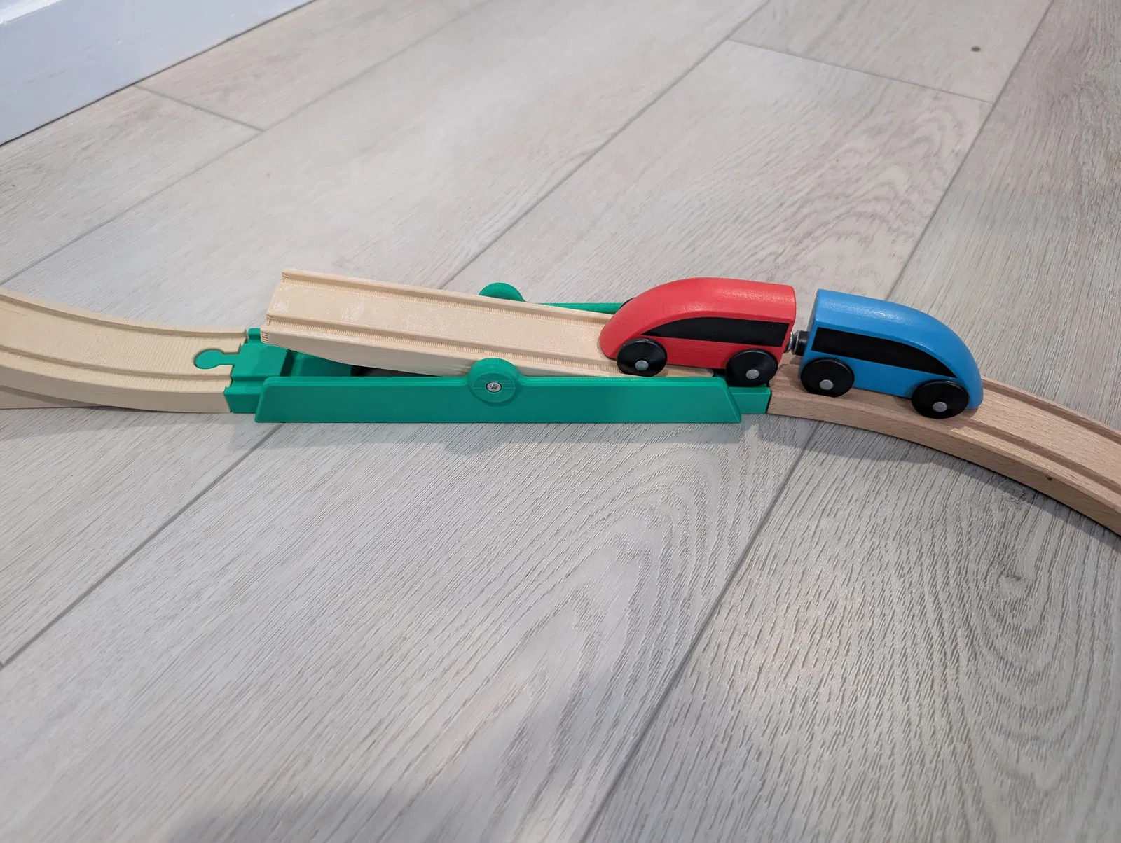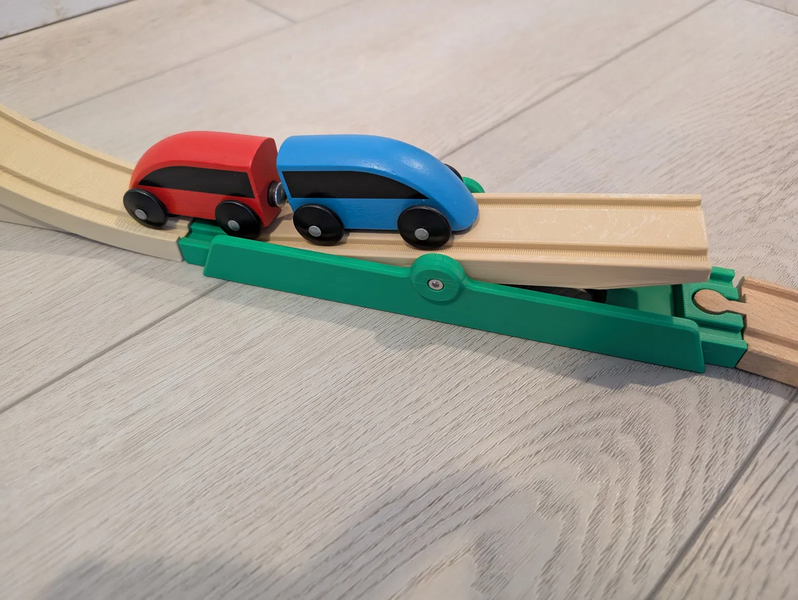 Cho xe lửa của bạn chơi với bập bênh này nha. Đường ray dài 216mm, tương đương mảnh Brio loại “D”. In không cần hỗ trợ, chỉ cần đặt mảnh dốc úp xuống. Dùng 2 vít M3 để lắp.